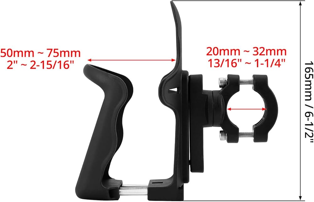 حجم حامل قابل للتعديل: اضغط مع الاستمرار على الزر الموجود أسفل حامل مشروبات ATV لضبط الحجم بسرعة (1.95-2.75 بوصة)، ضع الزجاجة وشد الصمولة لإكمال القفل.
