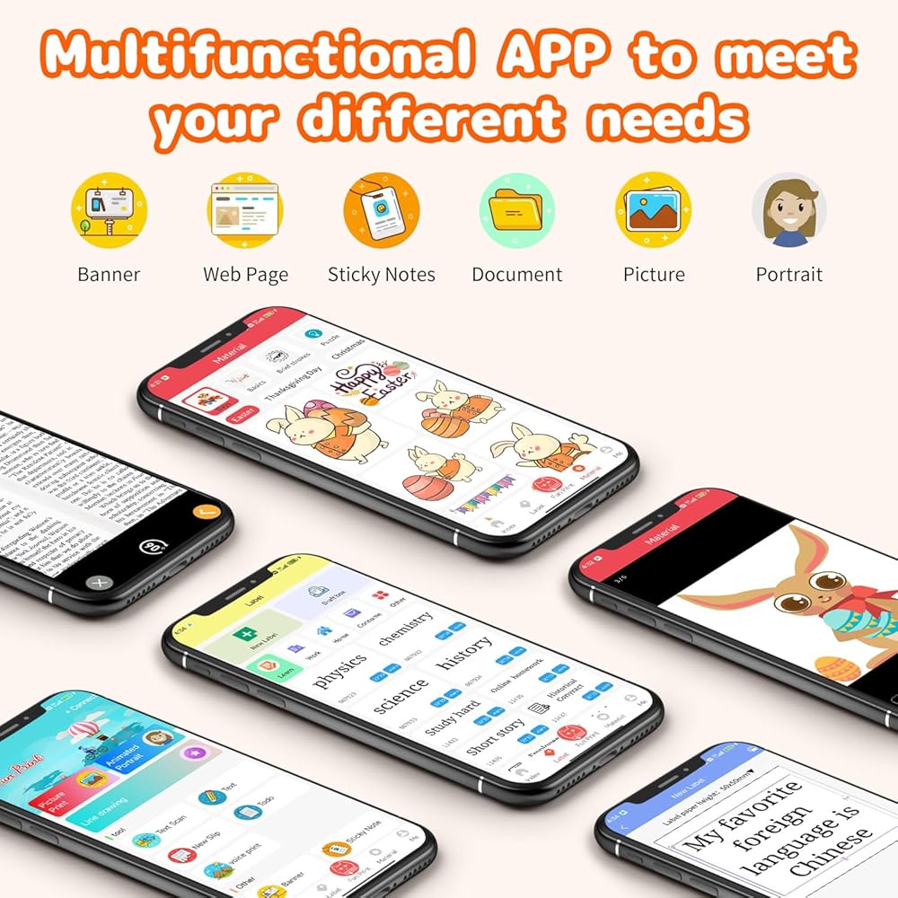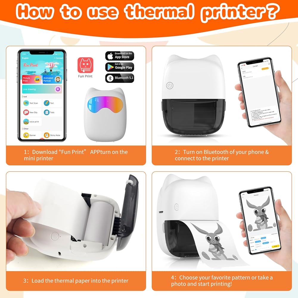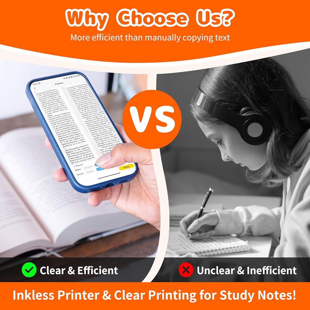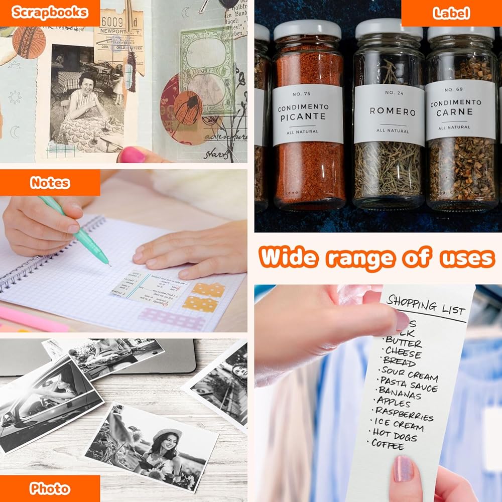 • 【طابعة جيب متعددة الوظائف - اطبع الآن】استمتع بتجربة طباعة واضحة دون الحاجة إلى خراطيش حبر باستخدام الطابعة الخالية من الحبر. يتم استخدامه لطباعة الصور/الصور بالأبيض والأسود، والمذكرات، وقوائم التسوق، وملاحظات الدراسة/الاجتماعات، والأعمال التجارية، وخطط العمل، ومساعدي المكاتب، وقوائم التسوق، والملصقات، والرسائل، والقوائم، ورموز QR، والسجلات، وما إلى ذلك. مناسب للمكاتب، الأسر والطلاب والأطفال والمحفوظات الهواة والأمهات وموضوعات التطبيق الأخرى. بغض النظر عن مكان وجودك، يمكنك الطباعة من أي مكان.