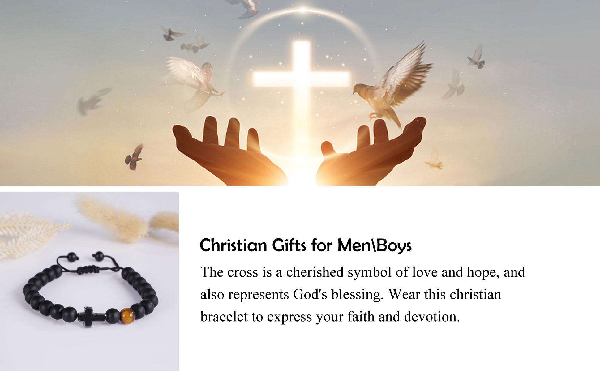 【سوار متقاطع】: الصليب هو رمز عزيز للحب والأمل. ارتدي هذا السوار المسيحي للتعبير عن إيمانك وإخلاصك. تذكر أن محبة الله ستكون موجودة دائمًا لتريحك وترشدك وتباركك. نرجو أن تشعر بدفء وراحة محبة الرب معك كل يوم.