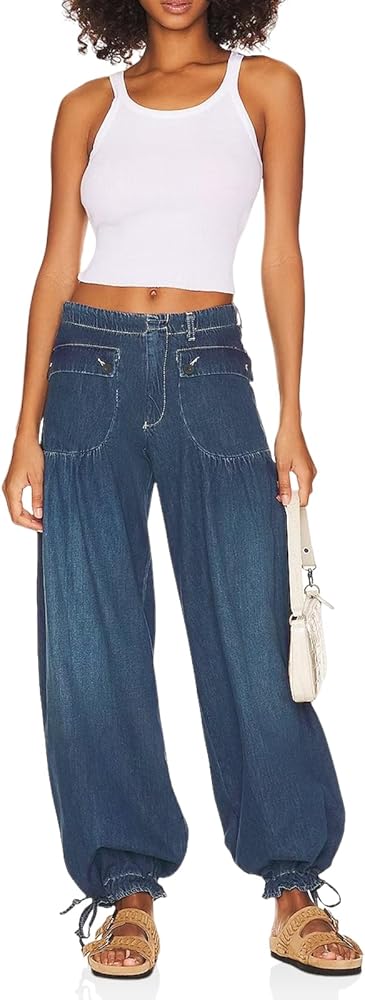 السمات: جينز رائع للغاية على شكل بالون من مجموعة الجينز العصرية لدينا يتميز بتصميم متوسط الارتفاع مع جيوب أمامية منسدلة على شكل رقعة وكاحل مربوط بربطة عنق مع طيات نسائية في كل مكان.