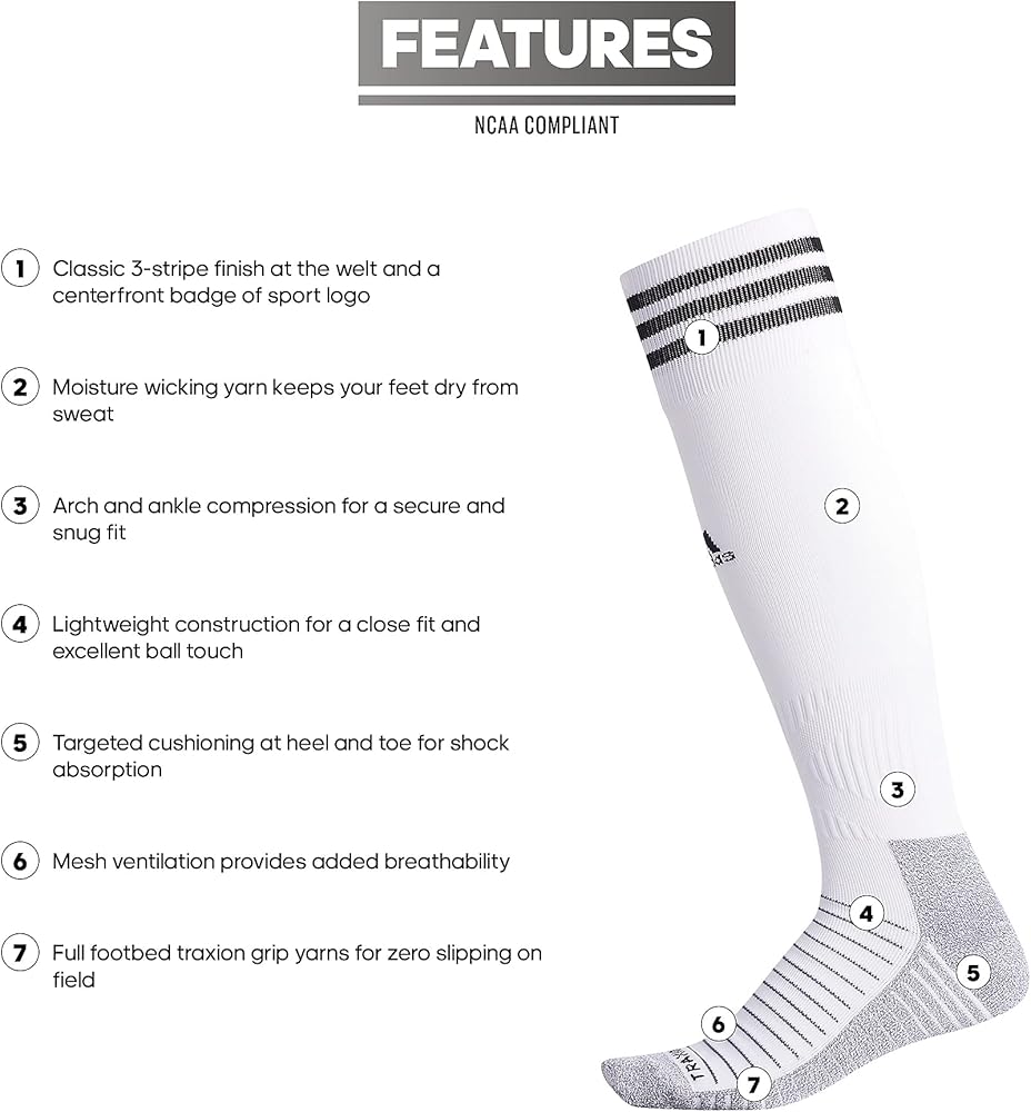 جوارب كرة القدم كوبا زون تراكسيون 4 من أديداس للجنسين للبالغين (زوج واحد)، أبيض/أسود، مقاس متوسط