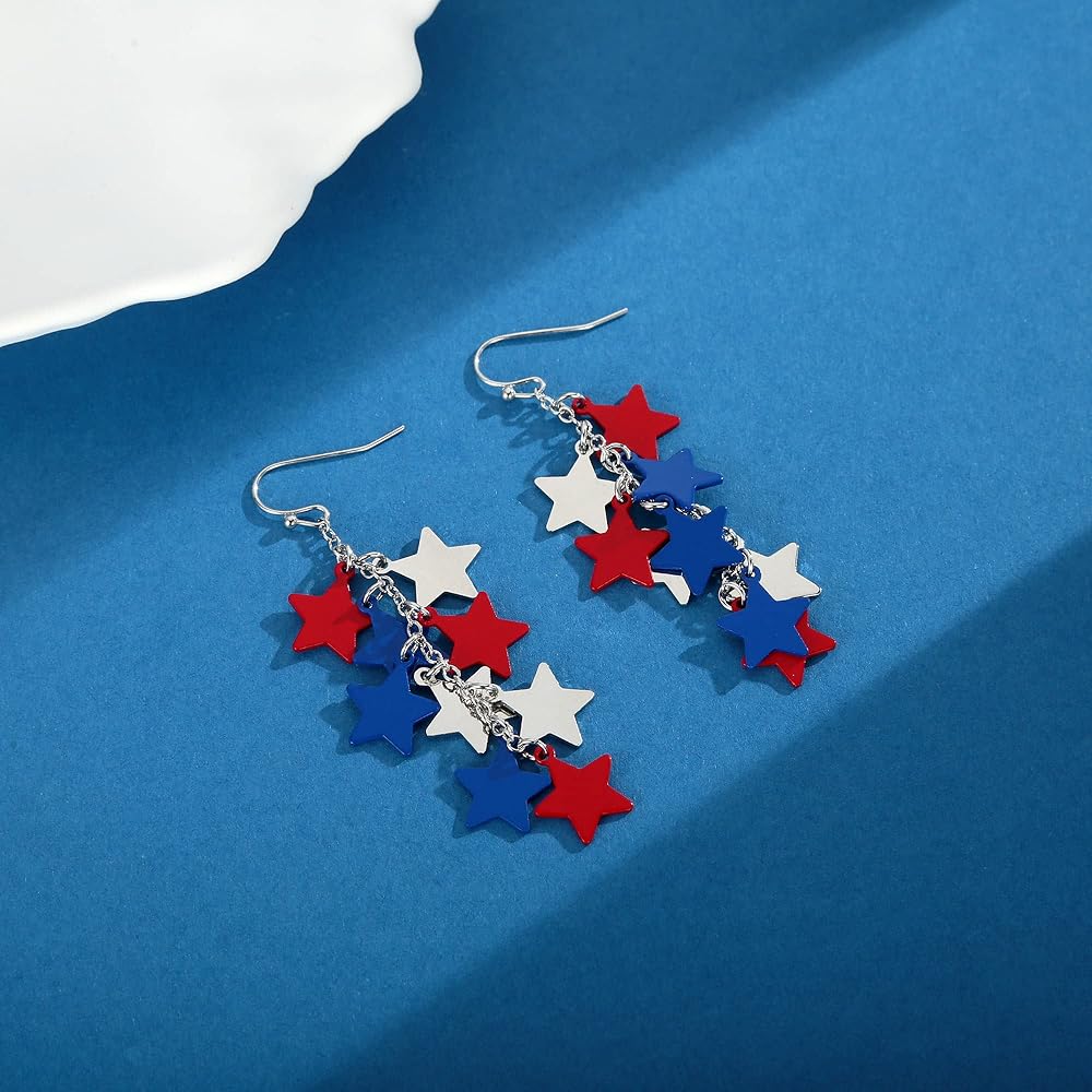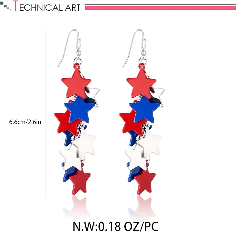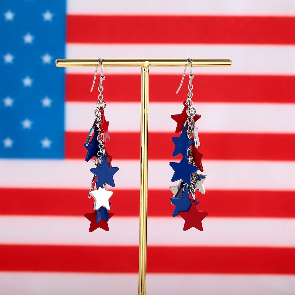 رفاهية بأسعار معقولة: احصل على المظهر الراقي دون إنفاق الكثير من المال. هذه الأقراط المتدلية على شكل نجمة في عيد الاستقلال بأسعار معقولة ولكنها فاخرة، مما يجعلها الهدية المثالية لك أو لأحبائك.
