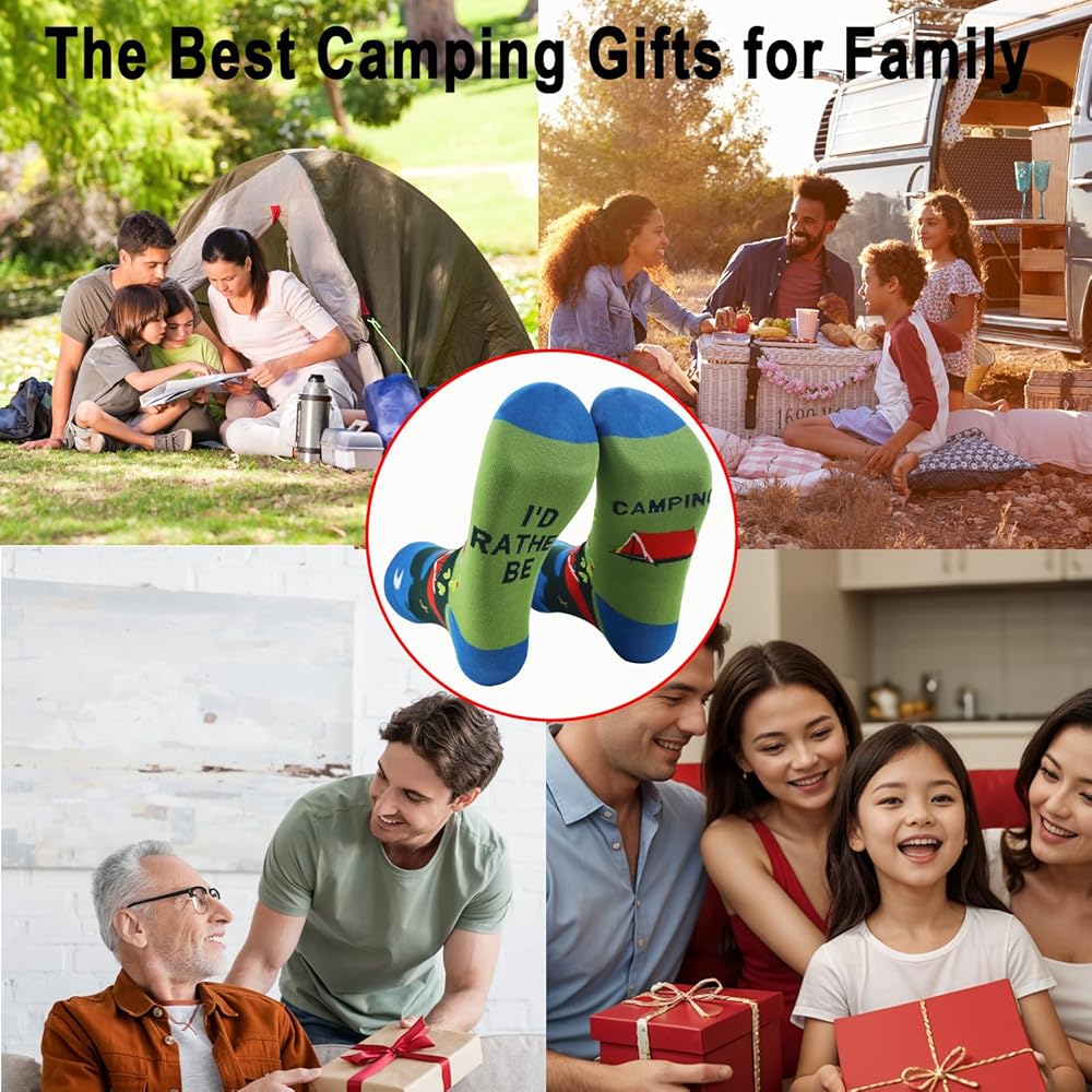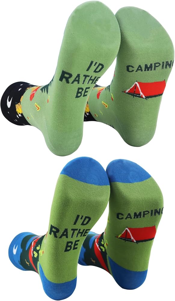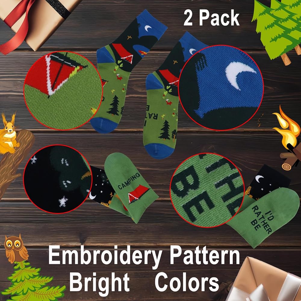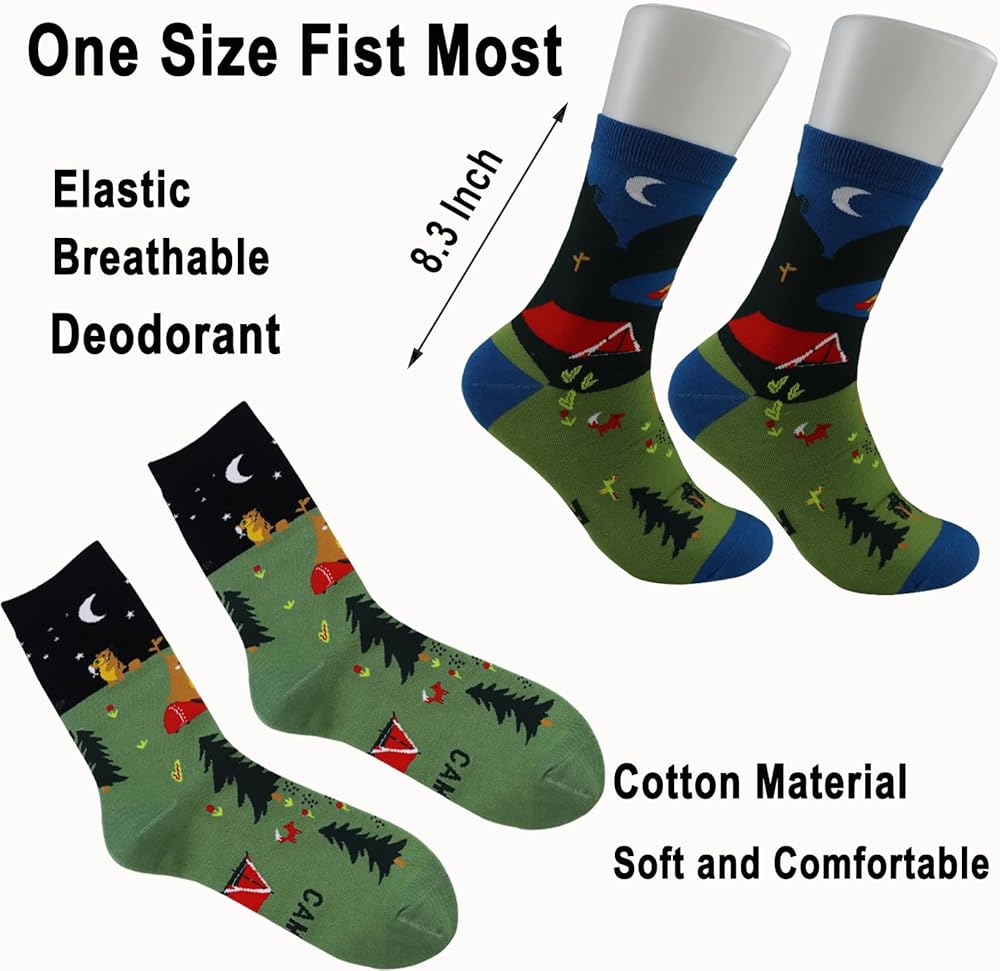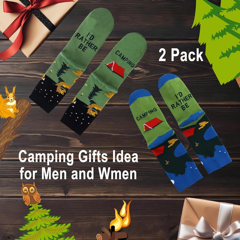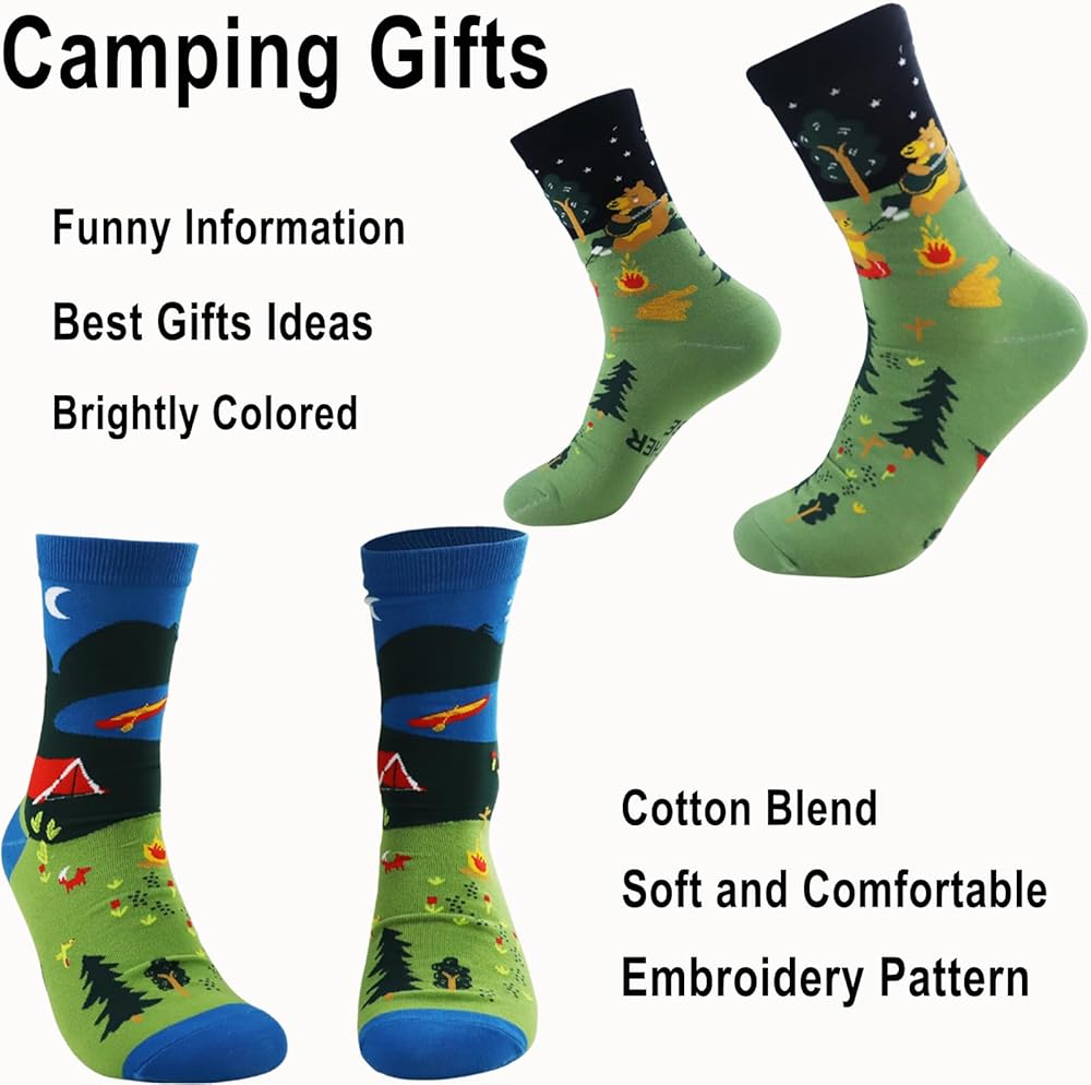 • Customer Satisfaction Priority: As a company, we prioritize your satisfaction. We are committed to resolving any issues you might encounter with your product. Our fun camping socks are not just an incredible addition to your winter camping gear or RV camping essentials, but also come with our assurance of top-notch customer service. Camping gear for men, experience camping in a new, fun way with our funky socks men love!