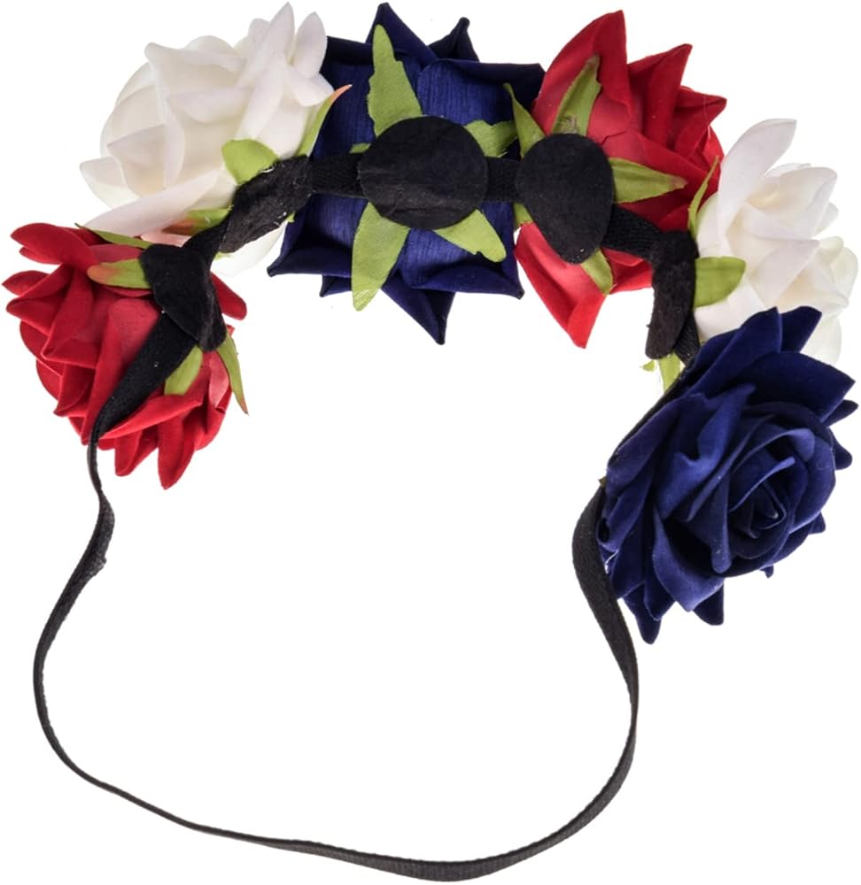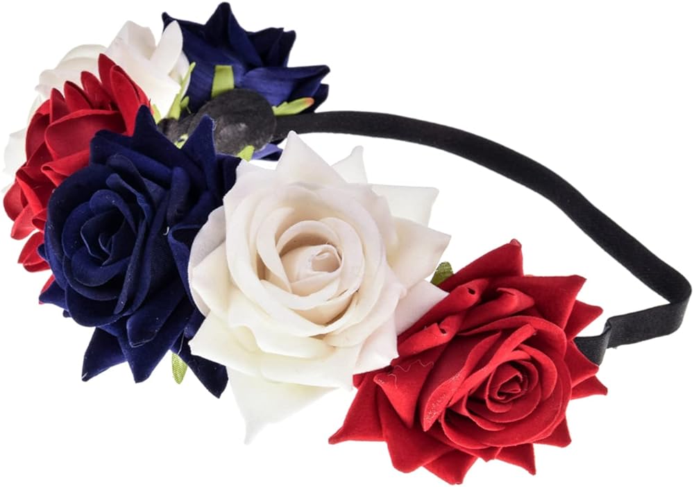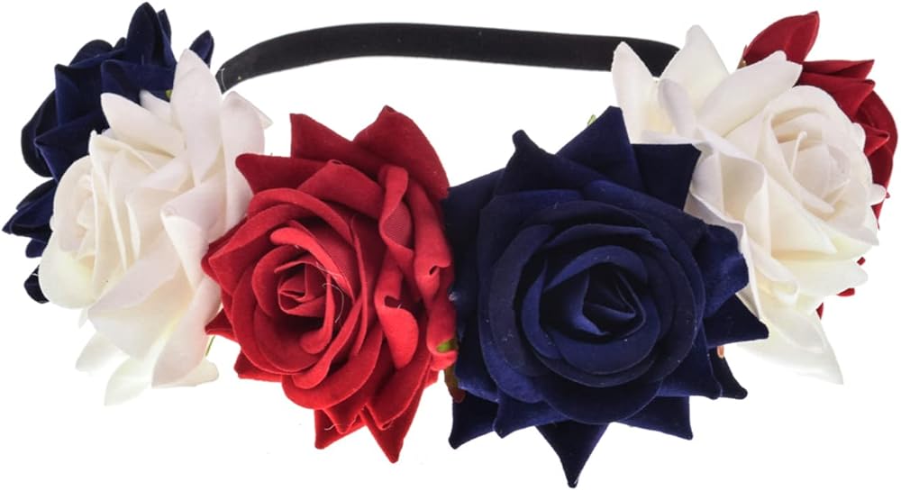 يونيو بلومي فيليت زهرة الورد الأحمر عصابة رأس للهالوين وحفلات الزفاف وإكليل الزهور وإكليل هالو وحفلات الرأس وتصوير الأمومة (أحمر وأبيض وأزرق)