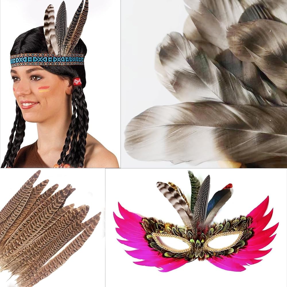 DIY Pheasant Feather for Crafts: Craft feathers turkey quill feather ideal for various DIY craft projects, mardi gras feathers such as Feather masks, flower arrangements, dream catchers, table centerpieces, clothing and hat adornments, wedding events decorations etc.