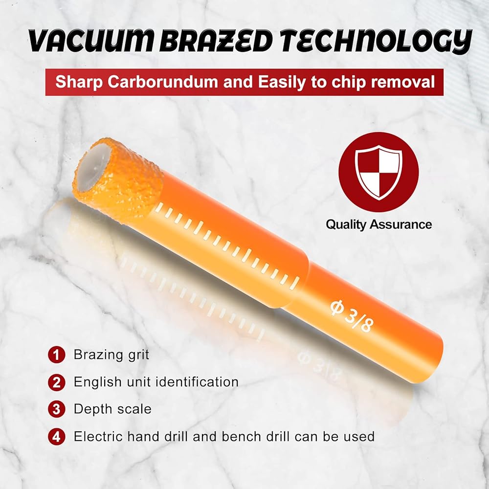 • Wide Use: Diamond coating enhances the drilling speed; Round Shank compatible with most machines such as Hand Drill, Angle Grinder, Bench Drill; Side flutes help to remove debris and drill holes smooth and fast; Depth mark useful for precise project