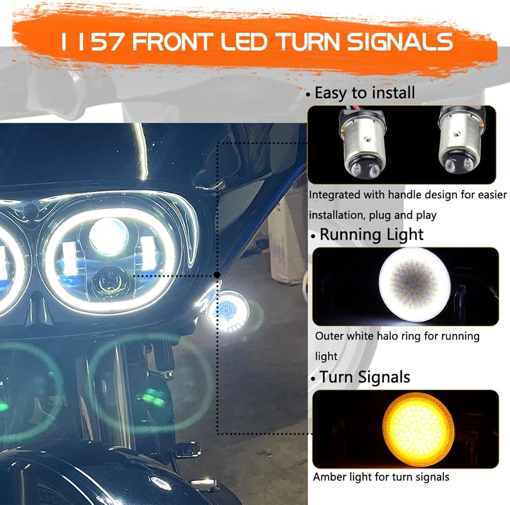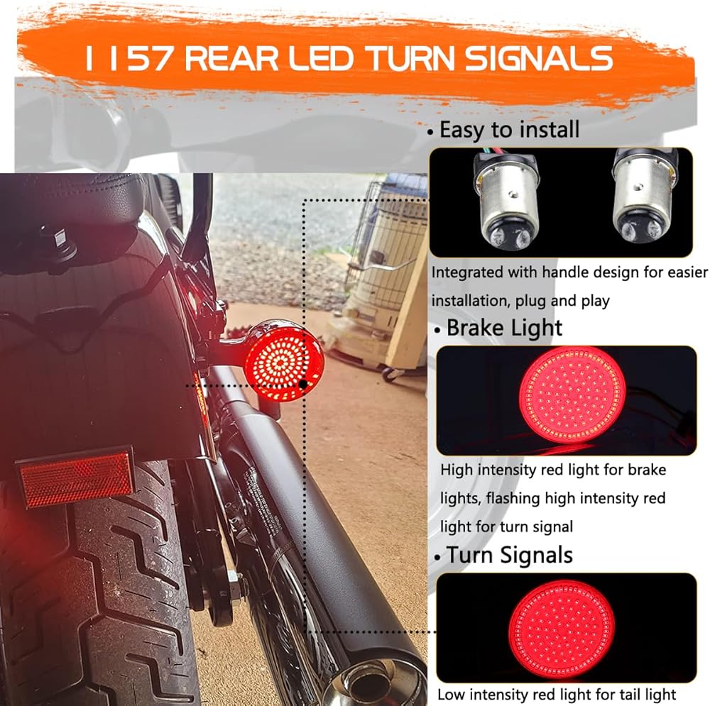 【التوافق: مصمم ليناسب دراجات Harley النارية مع 1157 مصابيح إشارة الانعطاف الأمامية والخلفية المزدوجة، بما في ذلك موديلات Harley Sportster، Touring، dyna، XL، Police، Softail، إلخ. للحصول على نماذج أكثر ملاءمة، يرجى الرجوع إلى أمازون الملاءمة المؤكدة.