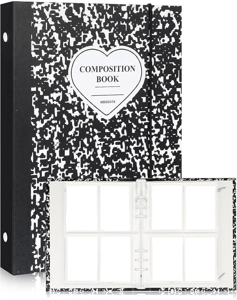 👍جودة عالية: غلاف الحلقات المكون من 6 حلقات يدوم طويلاً ومقاوم للماء، وآمن وعديم الرائحة، مع ملمس يدوي غير لامع وعمر خدمة طويل؛ يوجد سلك مرن على جانب غطاء المجلد، والذي يمكن إغلاقه لحفظ الألبوم الخاص بك ومنع البطاقات من السقوط