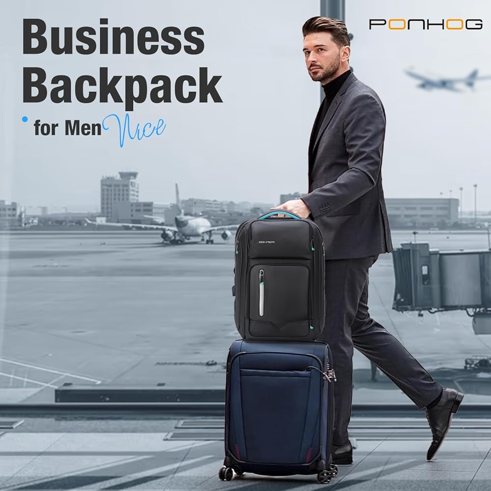 حقيبة ظهر للأعمال للرجال - حقيبة ظهر كبيرة للكمبيوتر المحمول مقاس 17 بوصة قابلة للتوسيع، تحمل على متن الطائرة معتمدة من إدارة أمن المواصلات الأمريكية، حقيبة كمبيوتر مقاومة للماء للعمل والسفر والتنقلات الجامعية باللون الأسود