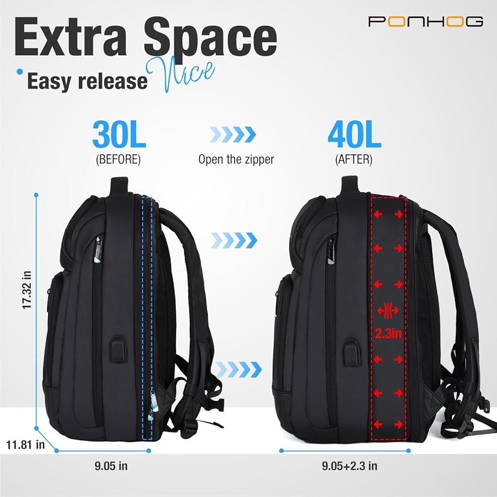 سعة سحرية: حقيبة ظهر للسفر للرجال تتميز بسعة قابلة للتوسيع من 30 لتر إلى 40 لتر. بحاجة الى مزيد من المساحة؟ ببساطة قم بفك الضغط للتوسيع. عند عدم الاستخدام، قم بسحبه مرة أخرى إلى حجمه الطبيعي. سهولة تبديل سعة حقيبة الظهر لمواقف مختلفة