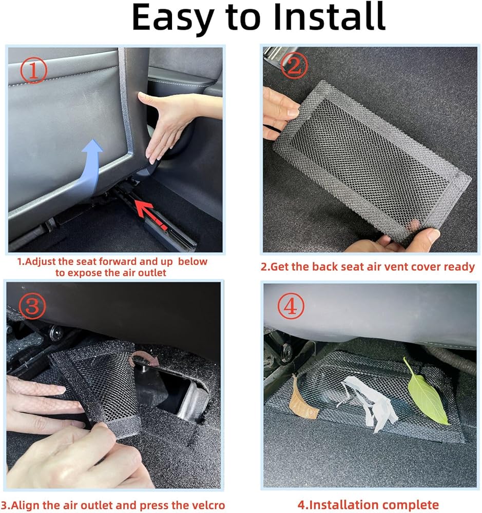 • 🚗【سهلة التركيب】: تغطي فتحة تهوية المقعد الخلفي تركيبًا سريعًا وسهلاً، ولا توجد حاجة لأي أدوات، ويمكن لصق الفيلكرو الموجود في الخلف بإحكام بشكل رائع على السجاد وسيبقى في مكانه. سهل الإزالة والتنظيف وإعادة التثبيت.