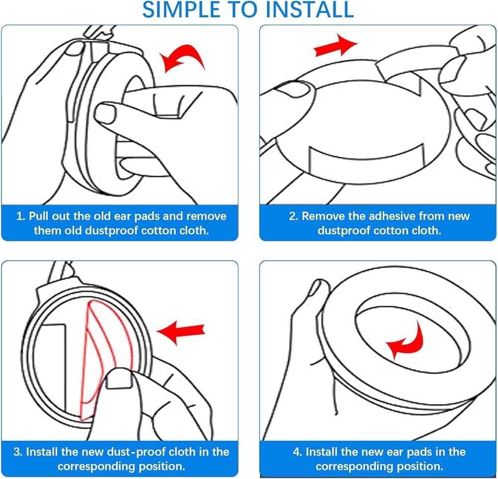 【قماش رقيق للغاية مقاوم للغبار】: يمكن للقماش الرقيق للغاية المقاوم للغبار الموجود في وسادة الأذن البديلة لسماعات الرأس أن يمنع سماعات الأذن من الغبار ويحافظ على نظافة الجزء الداخلي. وفي الوقت نفسه، فهو صديق لأذنيك ولا يؤثر على جودة الصوت.