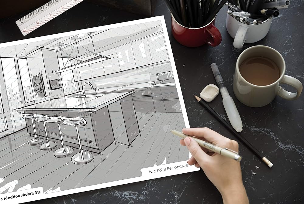 MULTI-MEDIA : Perspective Grid Paper Pad for pencil, ink, marker and watercolor painting.