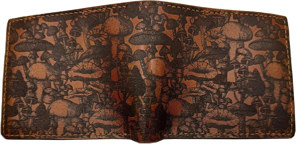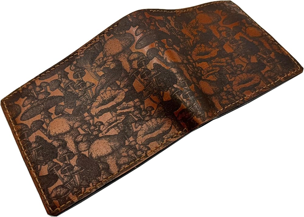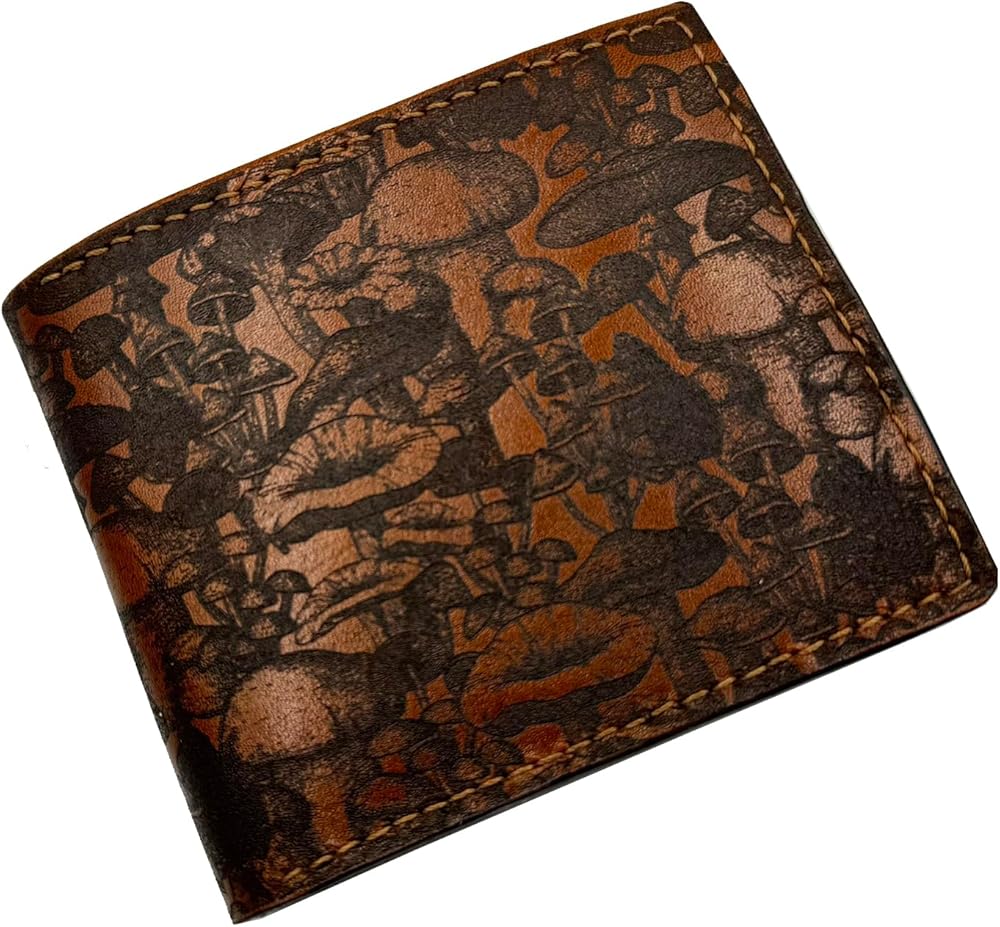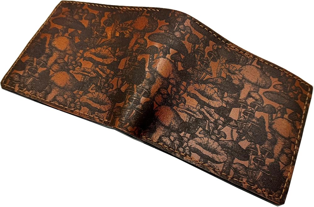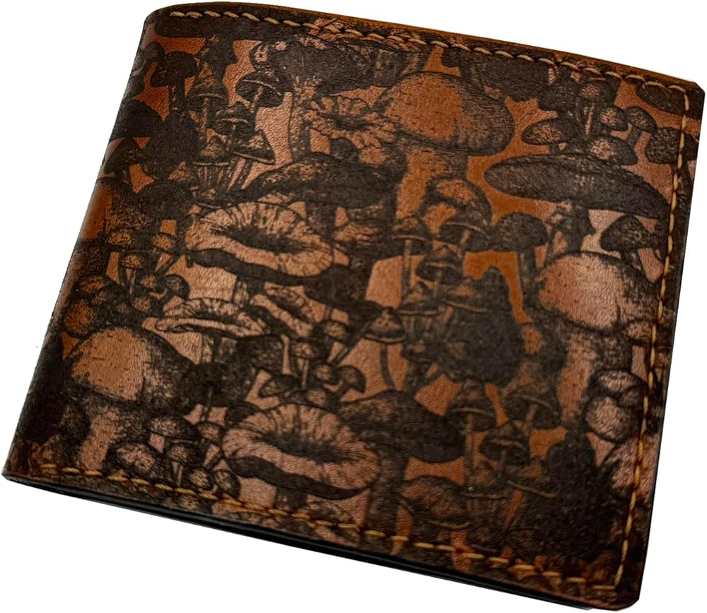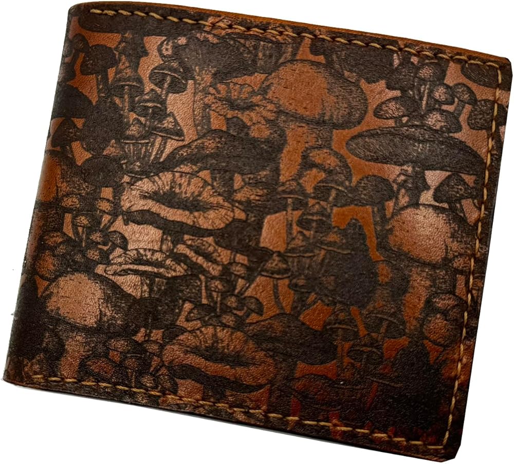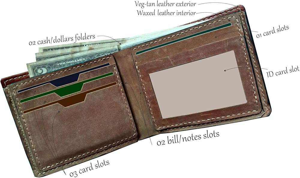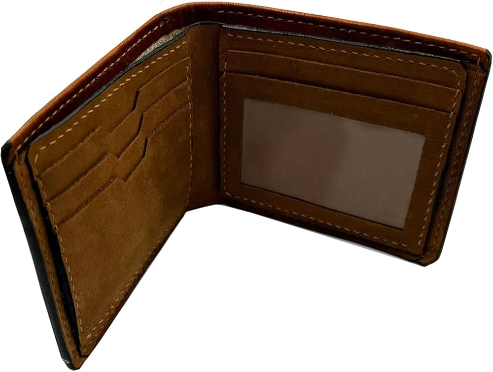- Mushroom genuine leather handmade men bifold wallet have 02 big folders for cash in horizontal, 02 medium folders for bill/driver license...04 card slots and 01 ID card folder