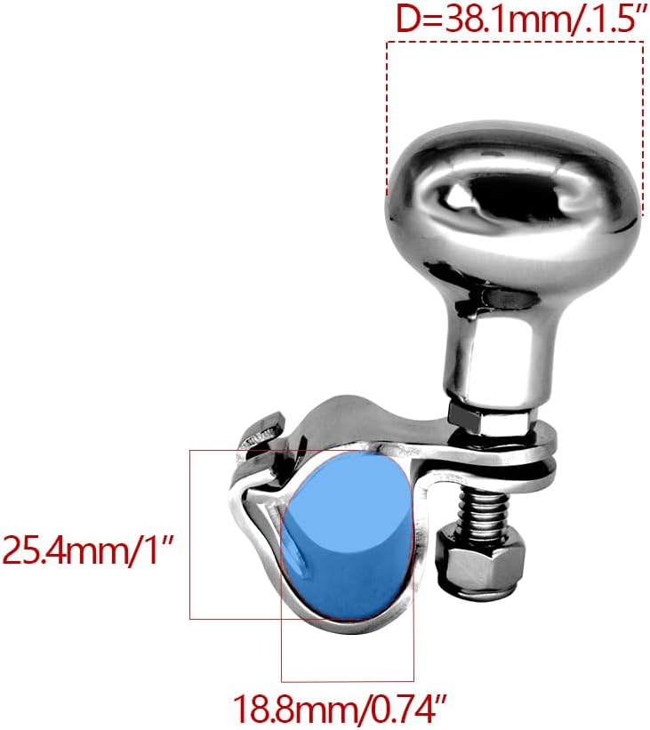 - تتضمن العبوة مقبض عجلة قيادة قارب بحري، ومفتاح ربط صغير، وتسمح باستجابة دوران أسرع. يجب على المشتري التأكد من أن قطر حافة عجلة القيادة الخاصة به يتوافق مع مواصفات المنتج، وأن يدرك أن مشبك التثبيت مصمم لقضيب حلقي بيضاوي.
