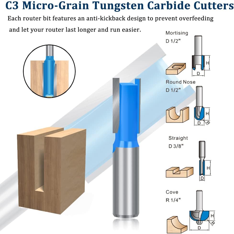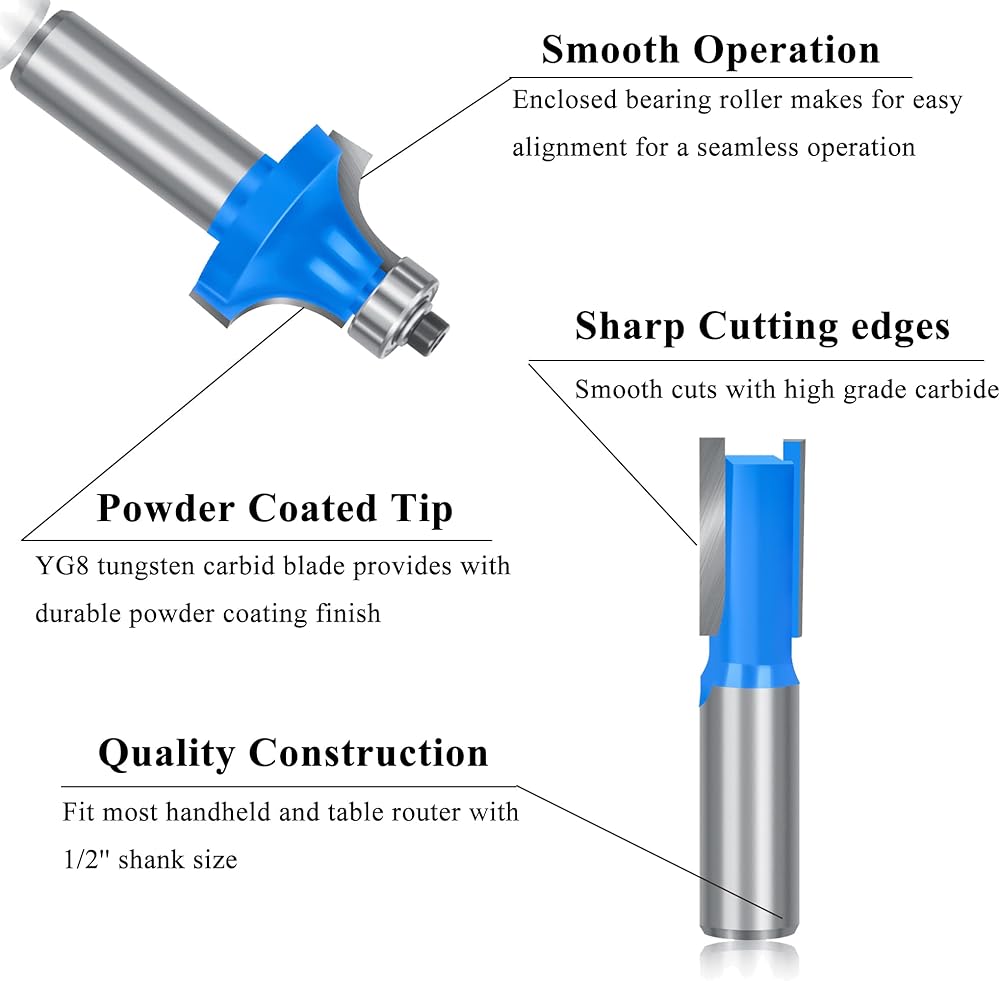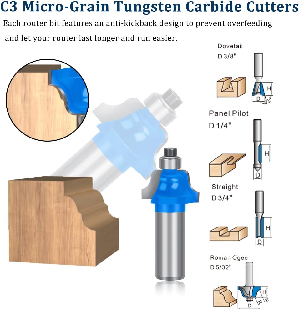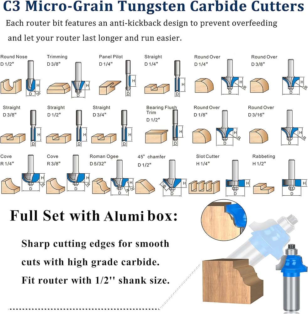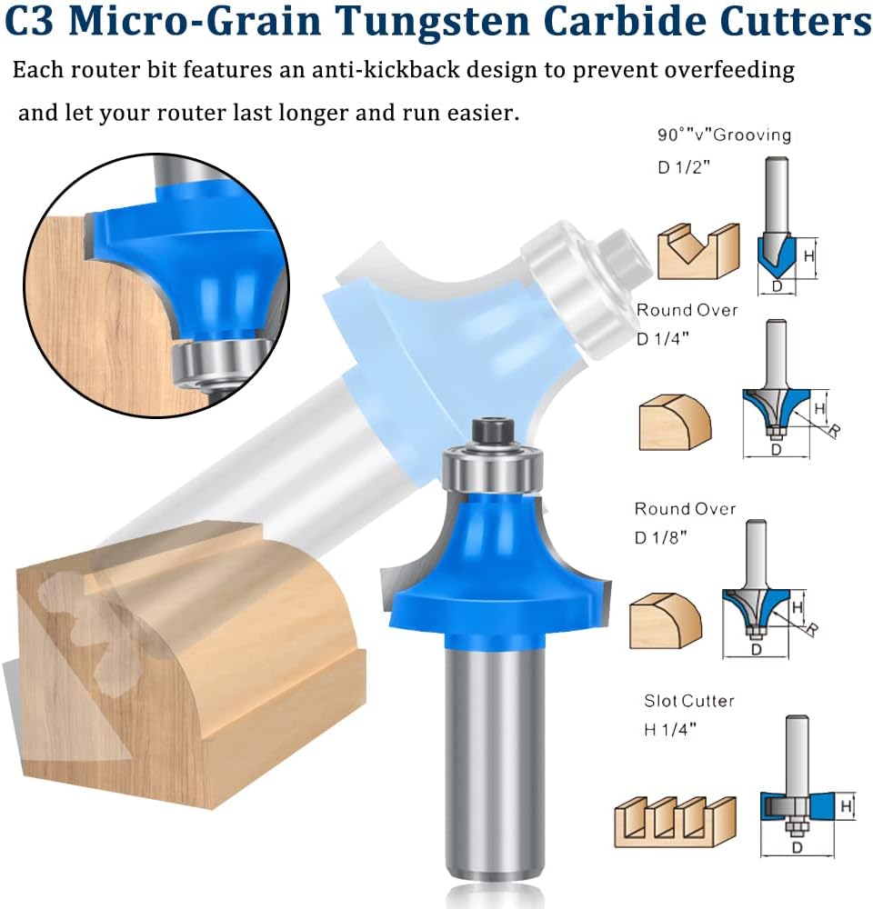 • ▲ Basic Information-- 1/2" shanks and Premium C3 micro-grain tungsten carbide blades, Create rail and stile cabinet door frames for a sharper & longer lasting edge. Router bit cutter material is YG6 Solid Hardened Steel.