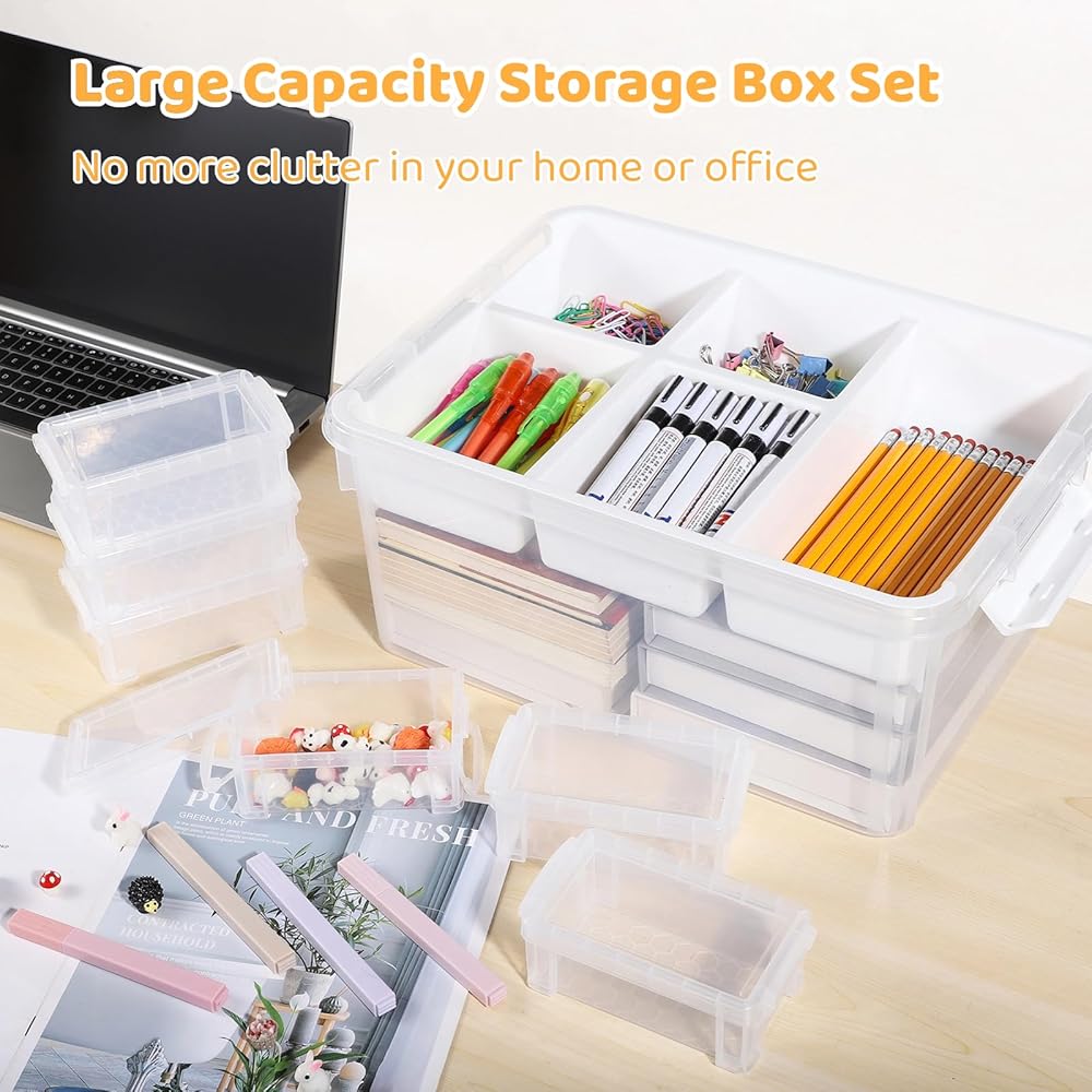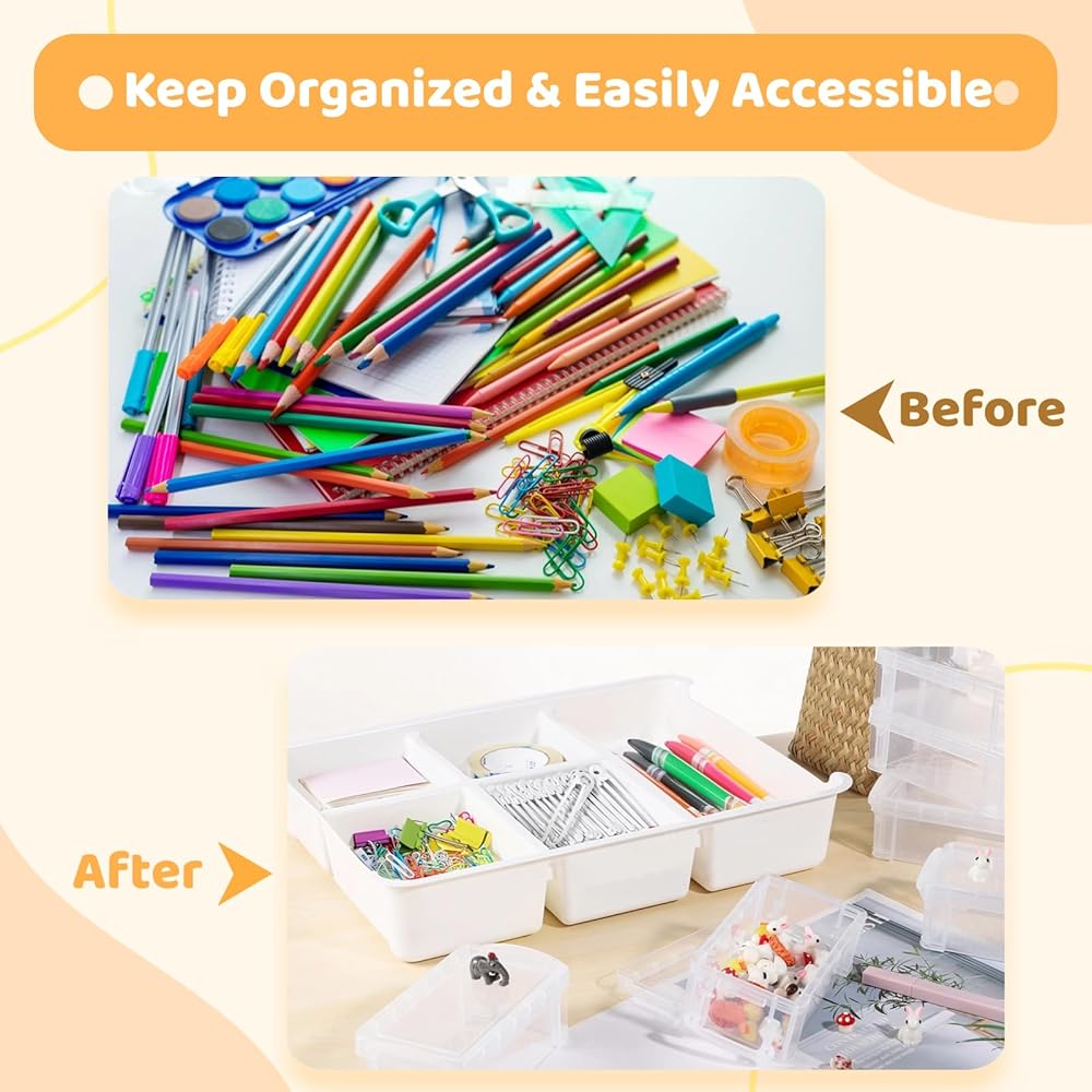 • 【مجموعة صناديق تنظيم متعددة الوظائف】مجموعة صناديق التخزين الخاصة بنا متعددة الاستخدامات ويمكن استخدامها لتخزين مجموعة متنوعة من العناصر مثل اللوازم الفنية ومكعبات البناء والكتب والقرطاسية واللوازم المكتبية ومستحضرات التجميل والمجوهرات والإكسسوارات اليدوية وأشتات الشمس اليومية. حافظ على منزلك أنيقًا ومنظمًا من خلال حل التخزين متعدد الوظائف الذي نقدمه، والذي يقضي على الفوضى.