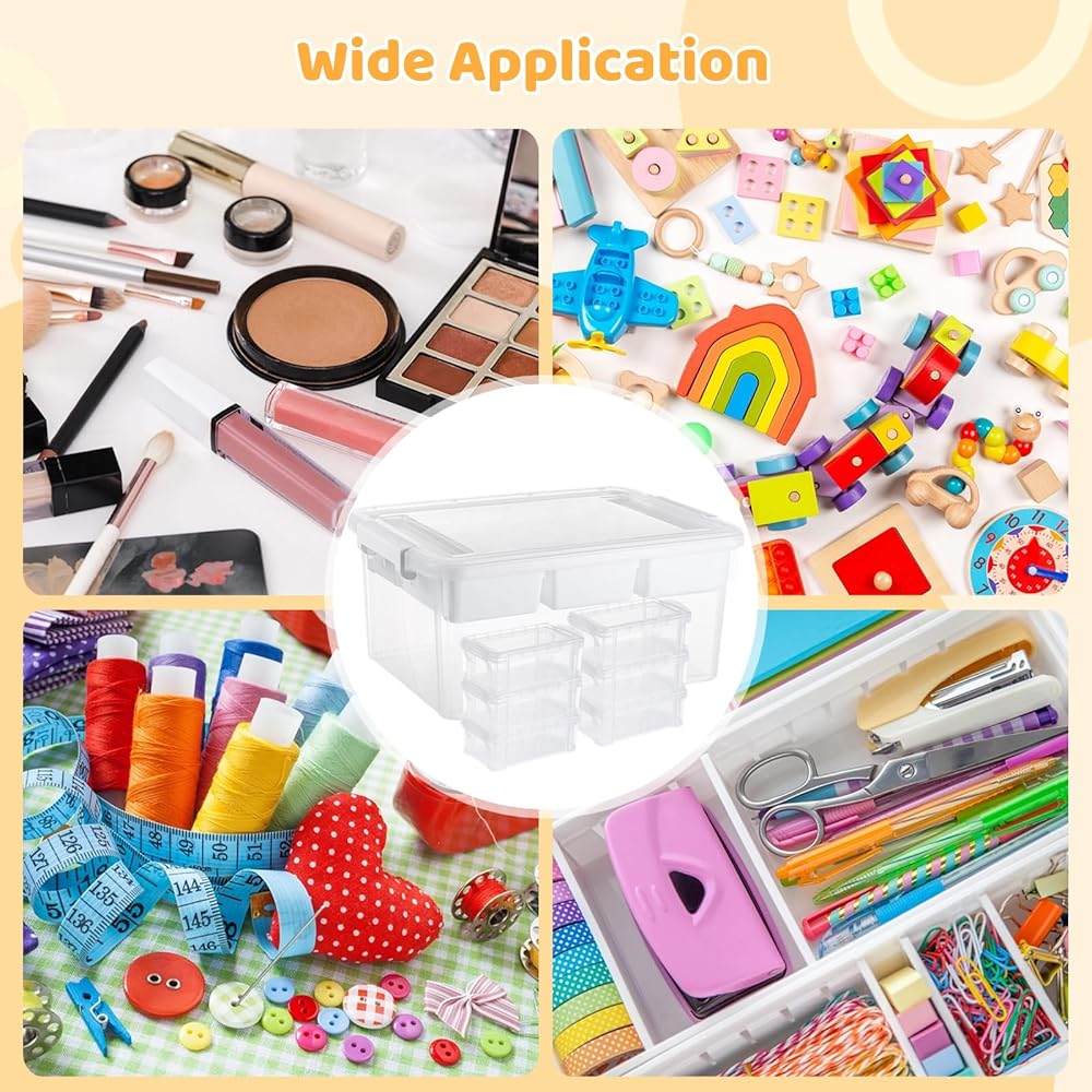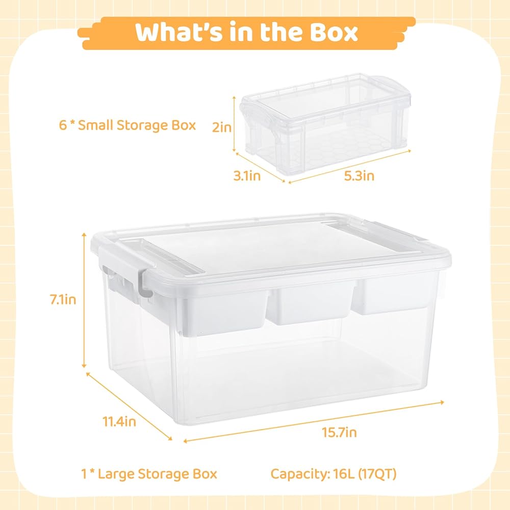 منظمات بلاستيكية وصندوق تخزين سعة 17 لترًا مع 6 منظمات تخزين فنية، مع غطاء وإبزيم إغلاق، وحاويات تخزين حرفية شفافة، وصندوق حرفي لتنظيم الخرزات والأدوات والخياطة