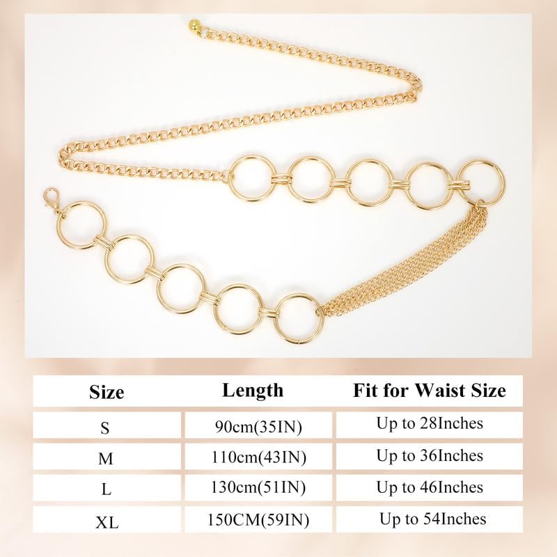 ❤الجودة - مصنوعة من خليط معدني. سطح أملس مصقول للغاية يجعل هذه السلاسل تبدو مذهلة. الوزن المناسب لن يجعلك تشعر بالثقل وعدم الراحة. مقاس متوسط: يناسب الخصر حتى 91.48 سم؛ مقاس كبير: يناسب الخصر حتى 45 بوصة.