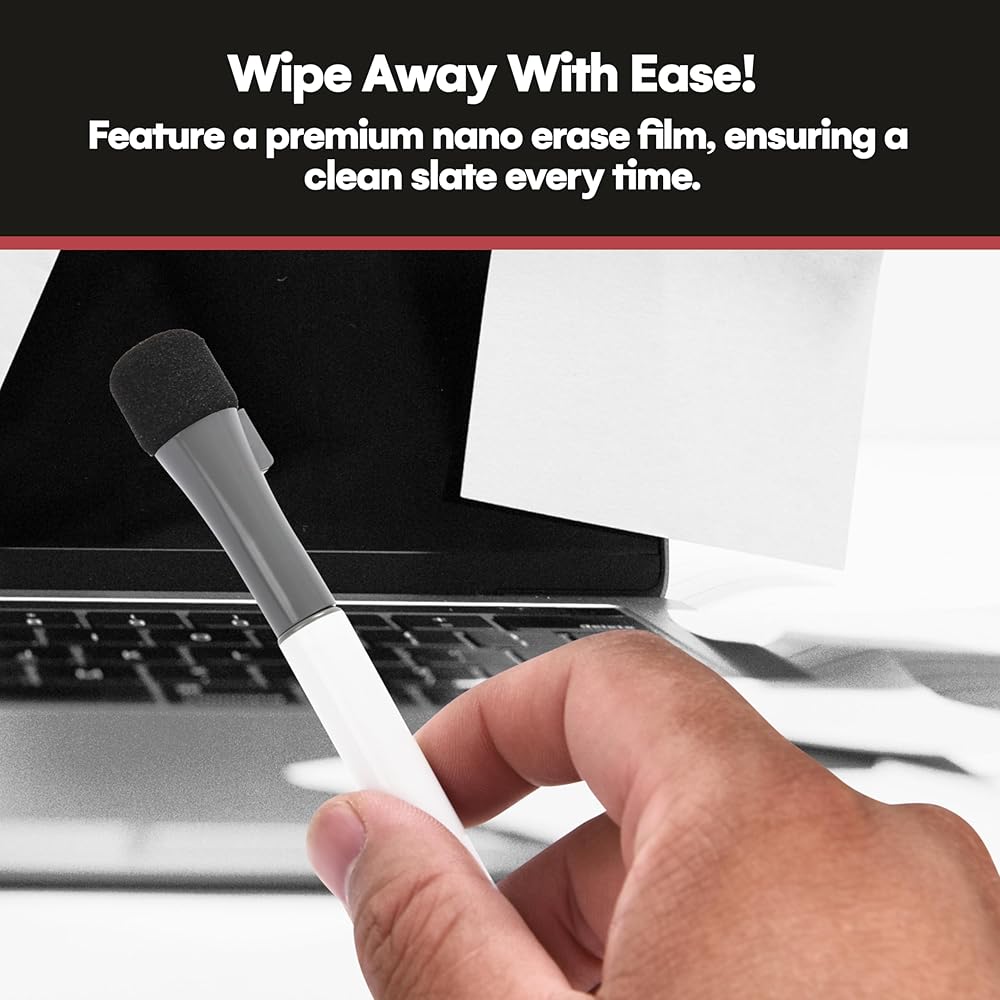 ورق المسح الجاف: قم بتضخيم تطور تدوين الملاحظات الخاص بك باستخدام ورق المسح الجاف. قم بتدوين الأفكار، وإنشاء القوائم، ورسم المخططات دون إضاعة عدد لا يحصى من الأوراق. تم صنعه بدقة كمسح جاف، واستمتع بالكتابة والمسح بسلاسة باستخدام أقلام المسح الجافة مع الممحاة. تم تصميمه على شكل جدار 2 × 2 قابل للمسح وعروات مسح جافة، فقط تمريرة سريعة ستزيل دون تلطيخ.