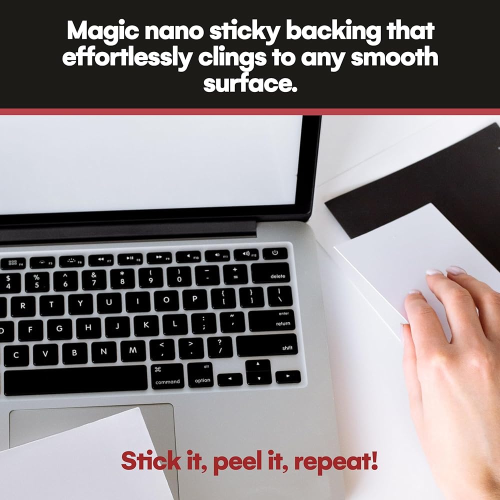 ملصقات المسح الجاف: ارفع أي سطح إلى مساحة خربشة باستخدام ملصقات المسح الجاف. قم بلصقها على الجدران، والخزائن، والمكاتب، وقم بتحويلها إلى ألواح بيضاء تفاعلية أو مناطق لتبادل الأفكار. يُطلق عليها بشكل مثالي ملصقات قابلة لإعادة الاستخدام للمسح الجاف، فهي تشكل لوحة بيضاء محمولة باليد صغيرة الحجم للرسم أو الرسم التخطيطي أو الخربشة ببساطة