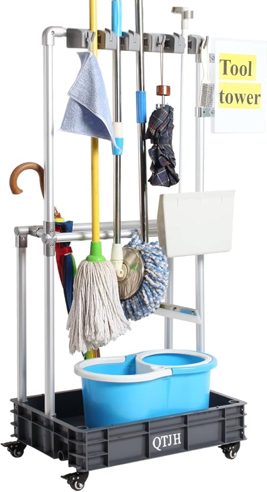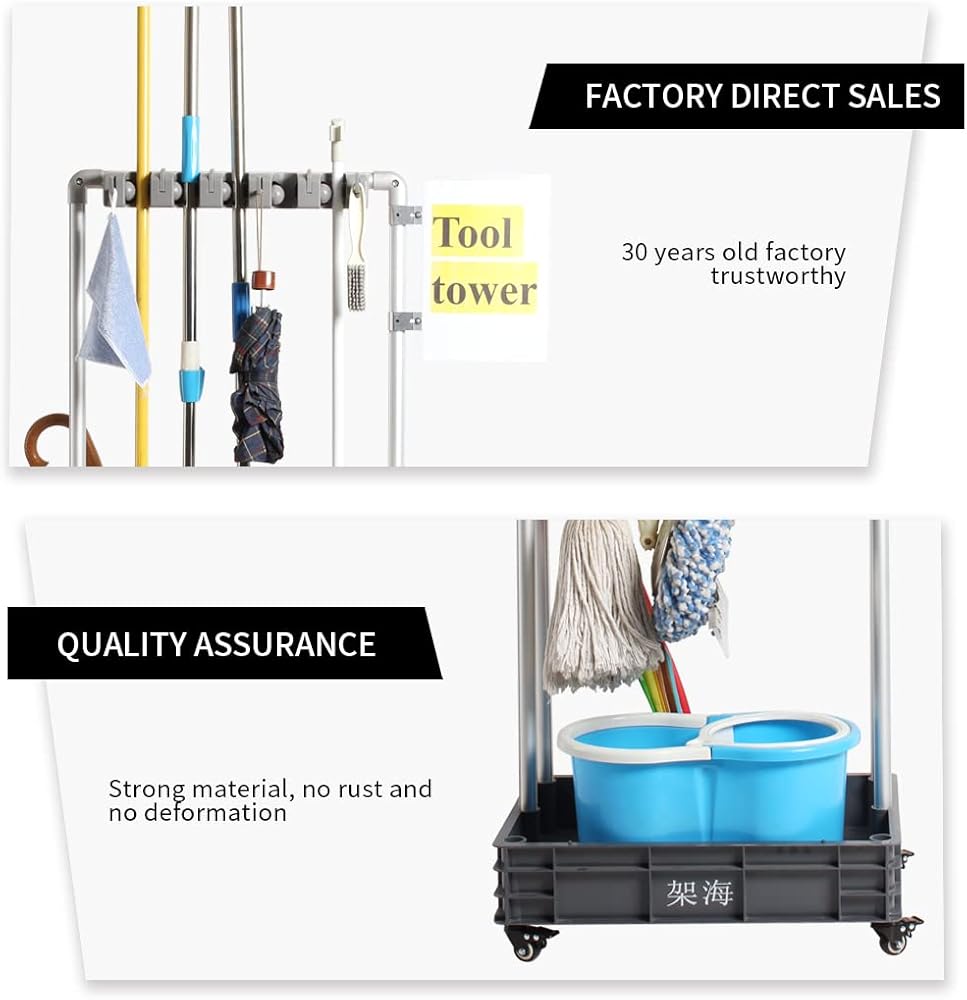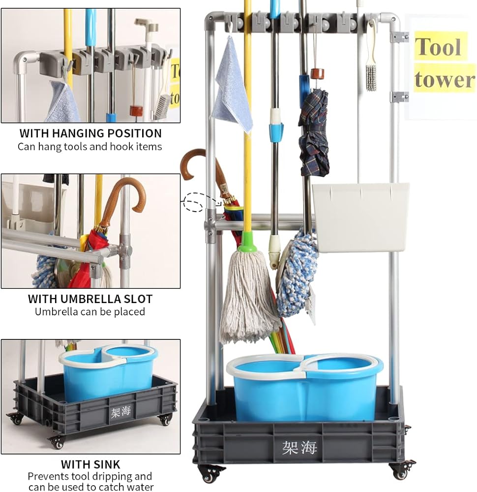 أداة تنظيف برج ممسحة حامل مظلة حامل، أداة تنظيف تخزين أداة استنزاف أداة شماعات 5S الظل المجلس