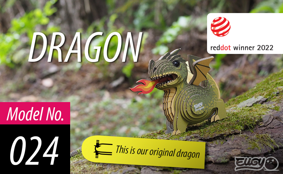 أحجية Eugy Dragon ثلاثية الأبعاد، 26 قطعة ألغاز تعليمية صديقة للبيئة للأولاد والبنات والأطفال من سن 6 سنوات فما فوق.