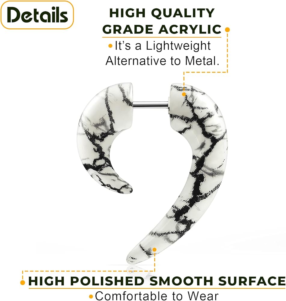 HIGH QUALITY GRADE ACRYLIC - It's a lightweight alternative to metal and can be worn during x-rays. Acrylic Fake Plugs Earrings are comfortable and easy to wear.