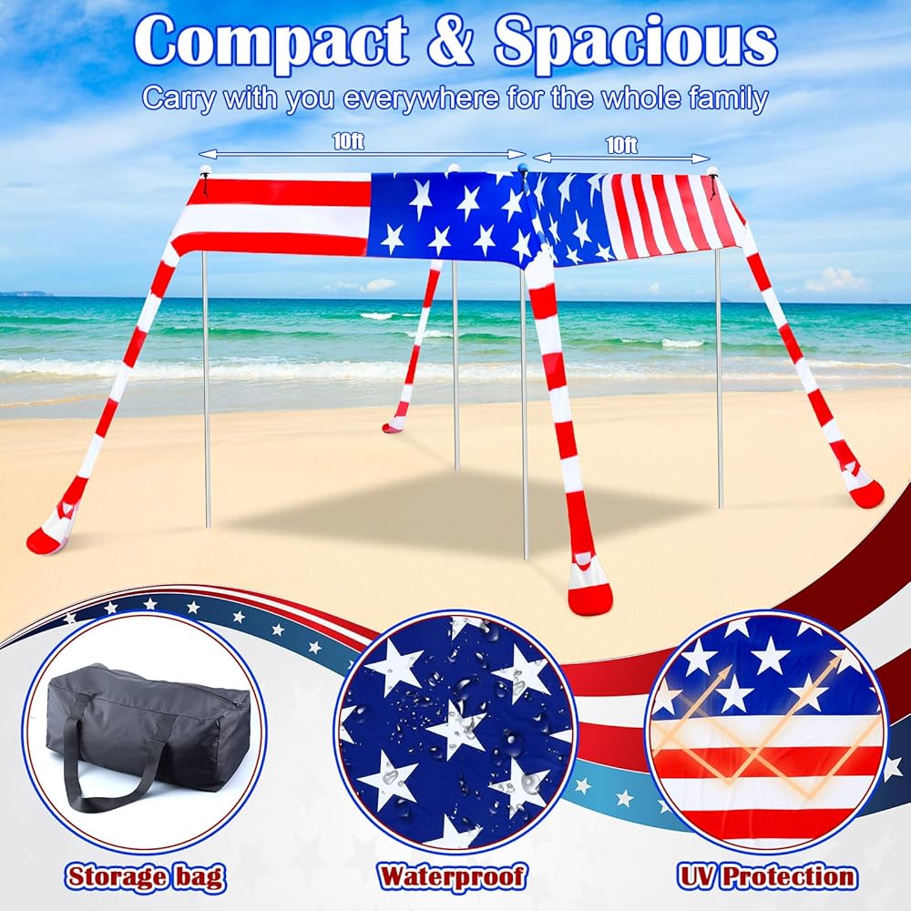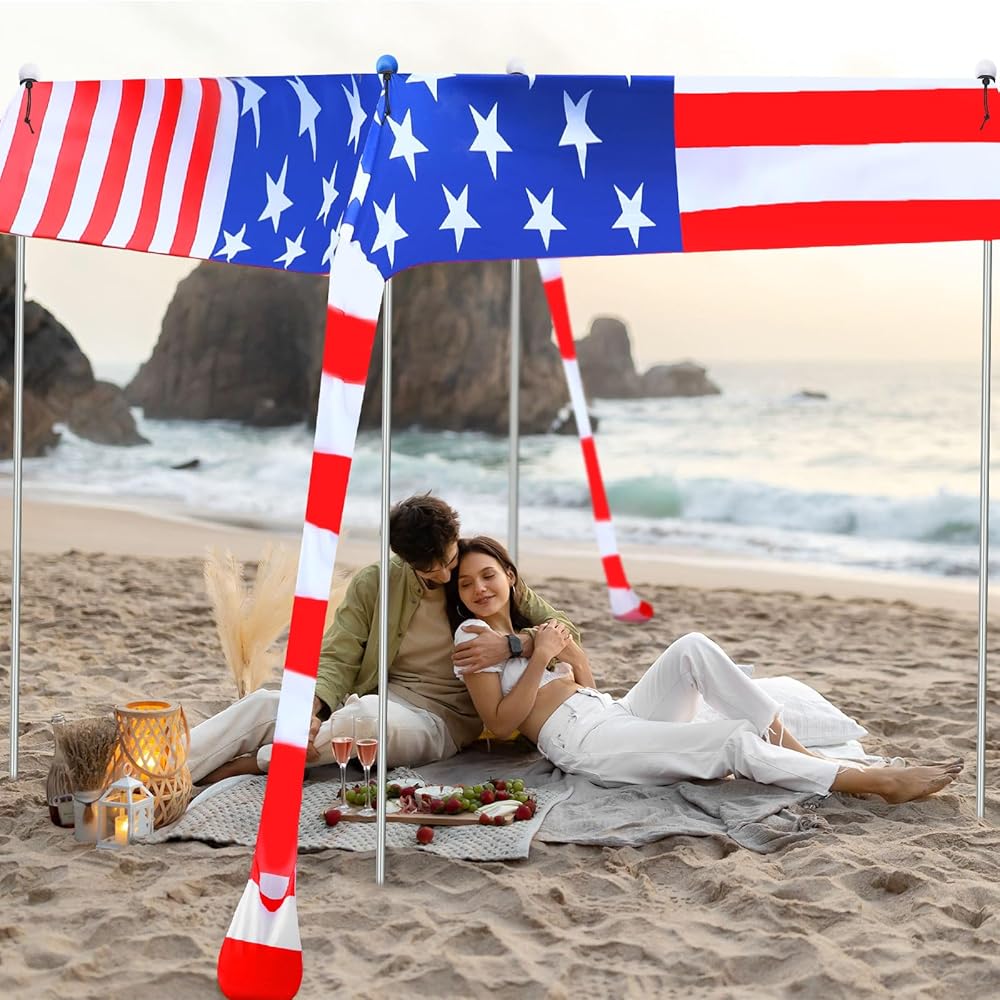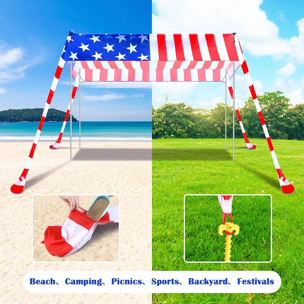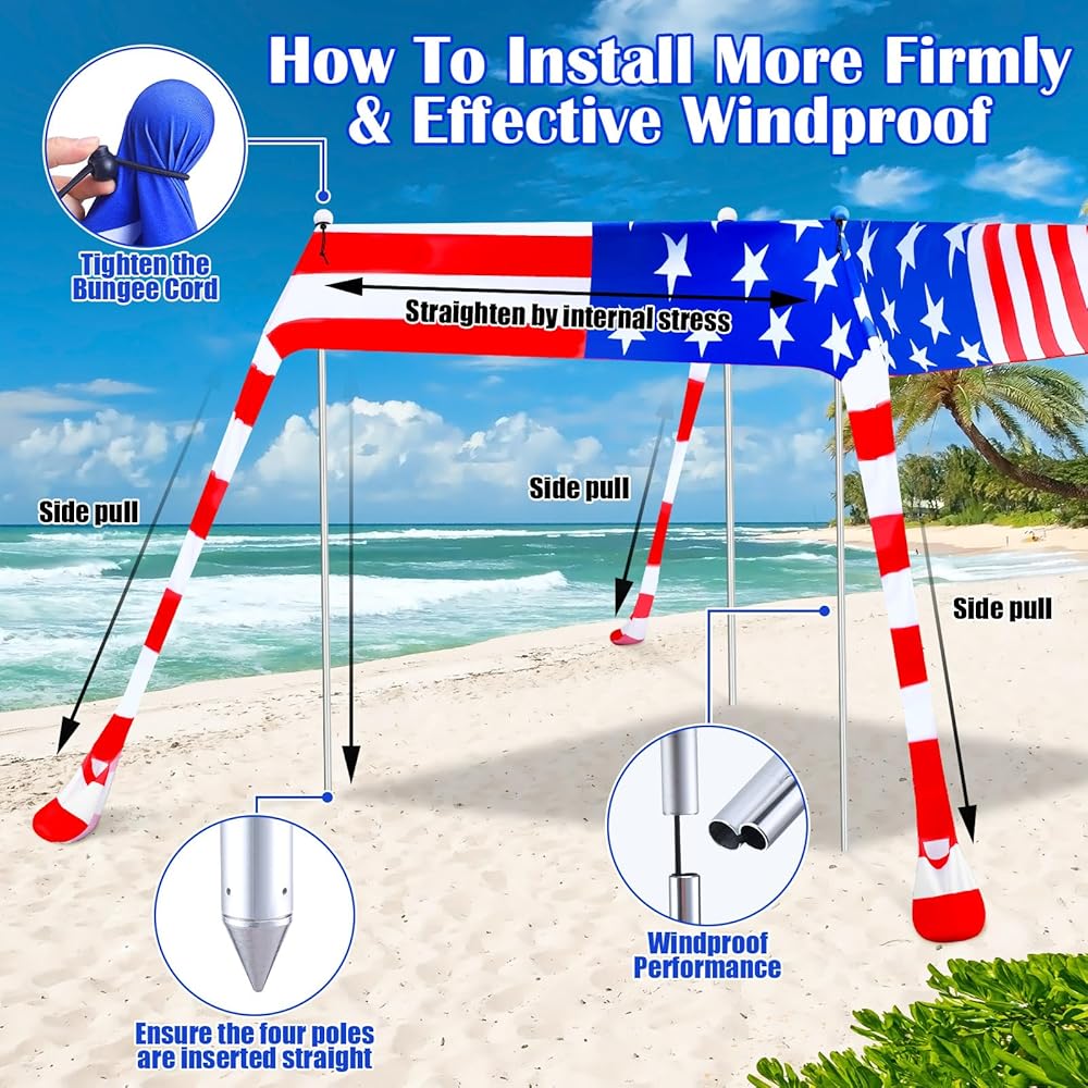 Designed for simplicity, our American flag canopy offers a hassle free setup and takedown, effortless in its installation, you can now spend more time enjoying the beach and less time fumbling with complex instructions.