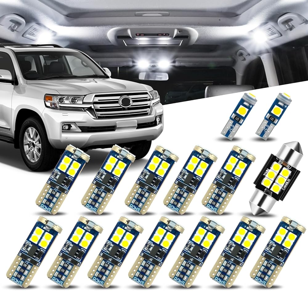 مجموعة مصابيح LED داخلية للسيارة (عبوة من 15 قطعة) 12 فولت 5500 كلفن متوافقة مع تويوتا لاند كروزر 2011-2021، أبيض نقي