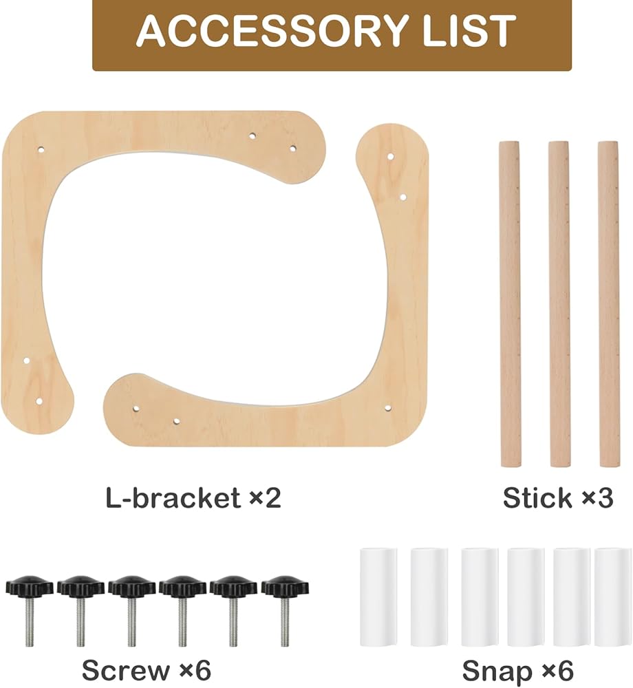 Assembly is a breeze with the easy-to-follow instructions. Simply insert the rods into the brackets and secure them with the six wing nuts. Attach the white clamp to firmly hold your fabric and rotate the rods until the fabric is taut. Finally, tighten the wing nuts to keep everything securely in place.