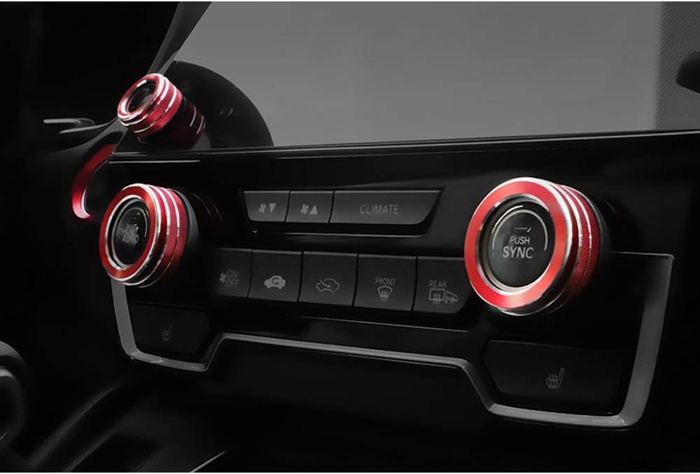 4 قطع من الألومنيوم لوحدة التحكم الداخلية متوافقة مع Honda CRV CR-V 2017 2018 2019 2020 2021 مقبض تكييف الهواء AC زر التوقف وزر التحكم في مستوى الصوت (أحمر)