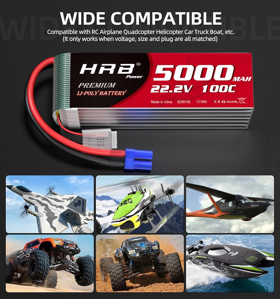 6s lipo battery ec5 Compatible with: rc hobby, rc car, rc buggy, rc truck, rc airplane, rc helicopter, rc drone, etc. (Only if the voltage, dimension and the plug match, then it will fit)