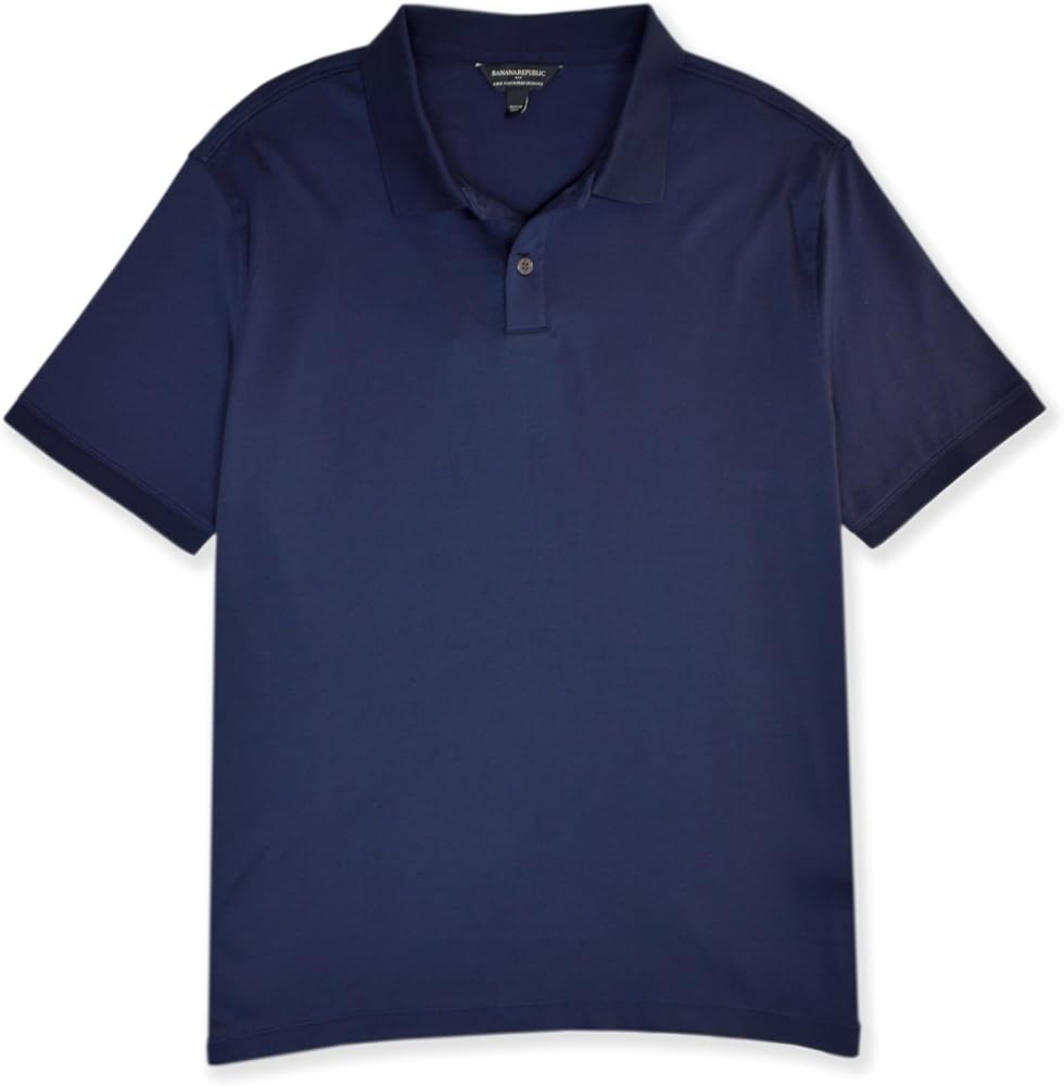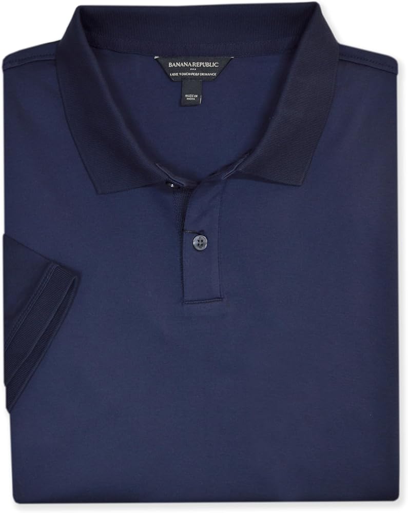 قميص بولو رجالي من Banana Republic 710638 بمقاس قياسي من القطن الفاخر ذو الملمس المزدوج (كبير، أزرق داكن)