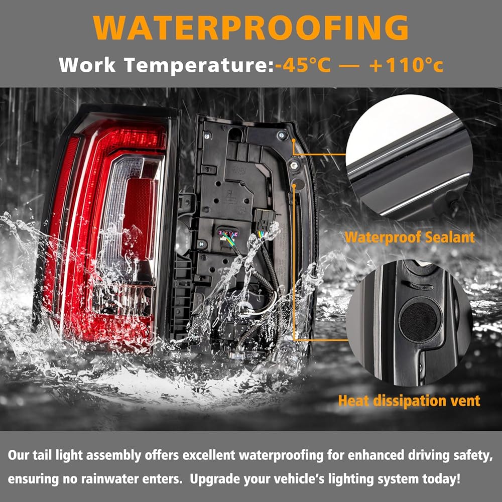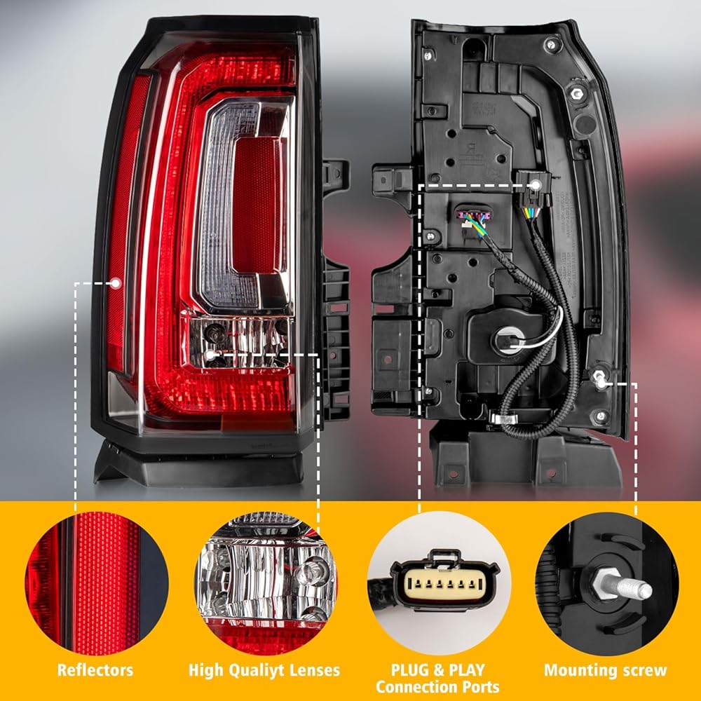 • ملاءمة مثالية: تم تصميم مجموعة مصابيح الذيل الخاصة بنا خصيصًا لتناسب موديلات 2015-2020 GMC Yukon & Yukon XL (الطراز الفرعي: Denali، SLE، SLT).