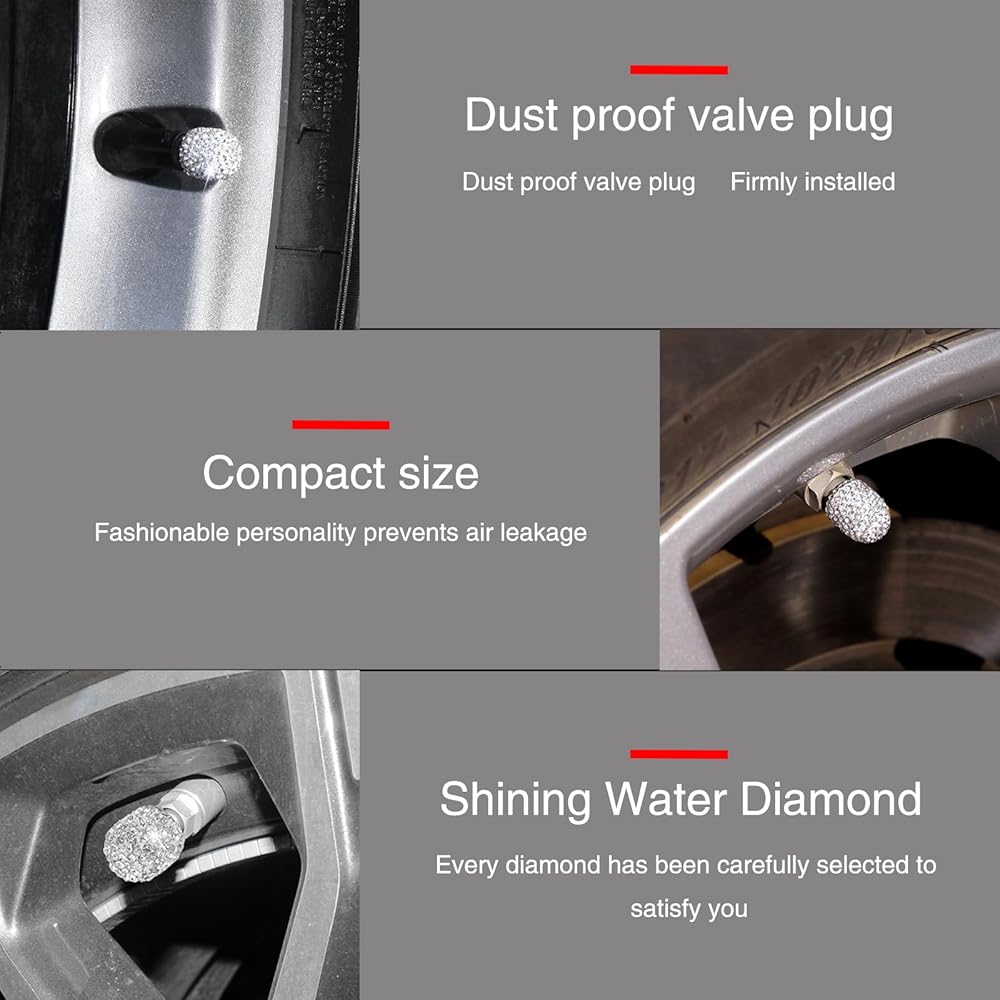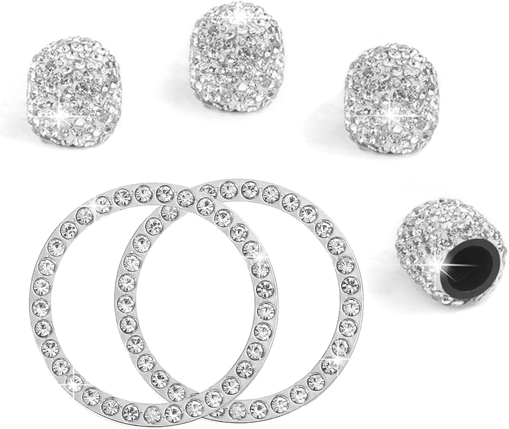 Shiny Valve Caps and Ignition Button Decor: These rhinestone valve caps can replace the original bad valve cap of the tire on bikes, cars, SUVs, trucks, and other motor vehicles. These rhinestone ring decors can be used for car engine start and stop push buttons, radio switches, stick shift etc.