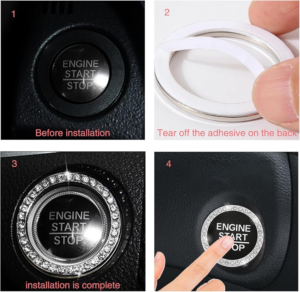 Application: These rhinestone ring decors can be used for car engine start/ stop push buttons, car a/c knobs, radio switches, stick shift etc.