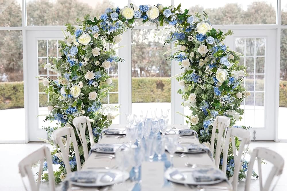 الفاوانيا المزخرفة وكرمة الورد - زهور الفاوانيا الزرقاء والبيضاء النابضة بالحياة والنابضة بالحياة. سوف يضيء كل ركن من أركان منزلك، أو سيكون إضافة مثالية لحفل زفافك وديكور الحفلات.