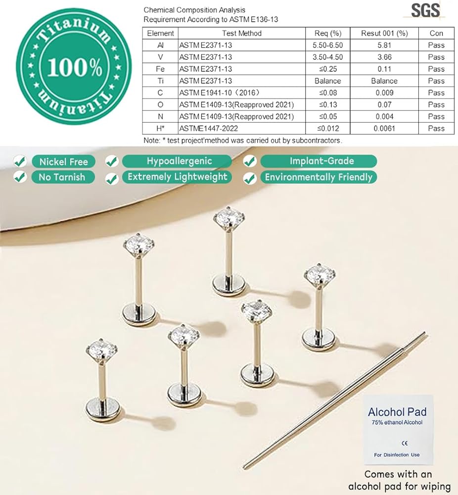✿Hypoallergenic & Comfortable: G23 titanium is an implant-grade environmentally friendly material with extremely lightweight qualities, Cartilage stud piercings are Non-Toxic, Lead and Nickel-free, sturdy and durable. Our flat back earrings stud has a high polished smooth surface and void of sharp edges, no irritation to your skin. Push in theadless, easy to put on and off, comfortable for daily use,You can wear it when sleep or take a shower