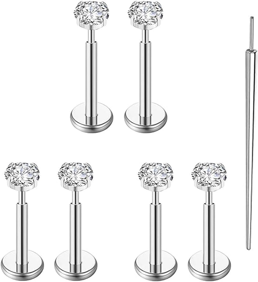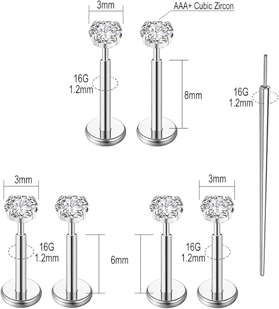 ✿Quantity & Size: You will receive 3 pairs of AAA+ grade cubic zirconia nose studs ,Gauge: 16g/18g/20g, Length: 6/6/8mm, Gem: 2/3/4mm, Each bar and top CZ can be switched at will. Perfect Wearing as piercing jewelry for Cartilage tragus helix conch medusa Monroe lip labret