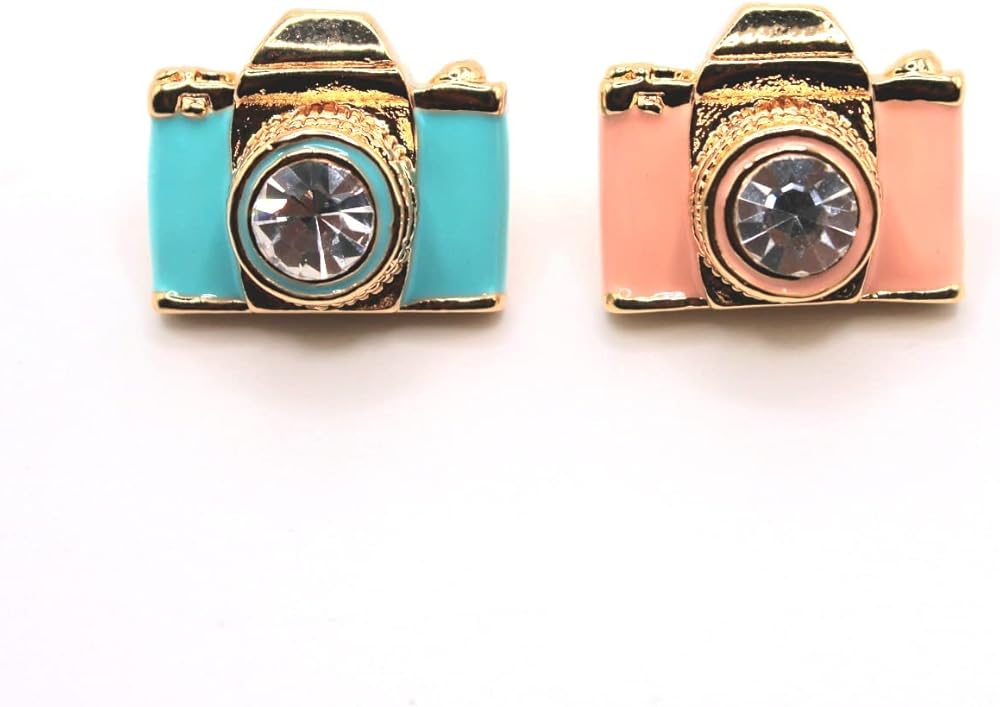 • التصميم: على شكل كاميرات مصغرة، هذه الأقراط ذات الأزرار هي قطعة رائعة وعتيقة لعشاق التصوير الفوتوغرافي. التفاصيل المعقدة، بما في ذلك عدسة حجر الراين باللونين الوردي والأزرق، تجعلها إضافة فريدة وملفتة للنظر لأي مجموعة مجوهرات.