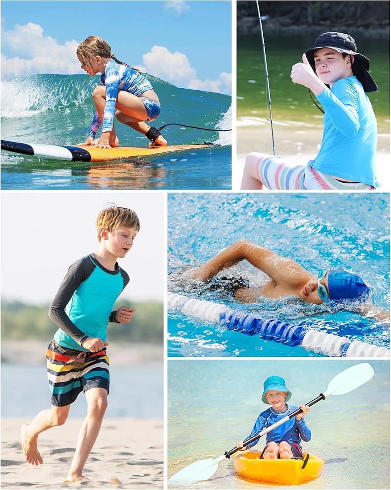 ✔استخدام متعدد الاستخدامات: مناسب لمختلف الأنشطة الخارجية، بما في ذلك السباحة والجري وصيد الأسماك وكرة القدم وكرة السلة وركوب الأمواج وركوب القوارب والمشي لمسافات طويلة وتسلق الجبال وما إلى ذلك. دع الأطفال يستمتعون بمتعة الأنشطة الخارجية والرياضات الصيفية، واقي واحد من الطفح الجلدي يلبي احتياجات متعددة، التكيف بسهولة مع مشاهد مختلفة!