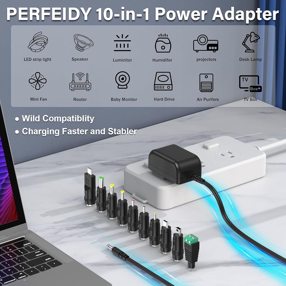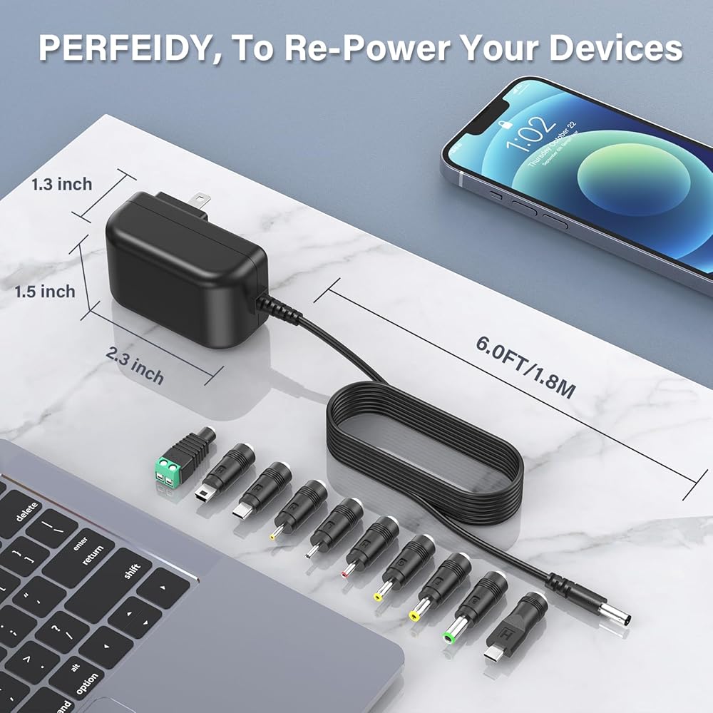 ⚠️⚠️⚠️يرجى التأكد مرة أخرى من أبعاد مقبس التيار المستمر لضمان التوافق، ما تحصل عليه: 1 × 5 فولت 2 أمبير تيار متردد إلى تيار مستمر من الفئة 2، 10 مقابس متعددة التيار المستمر، استرداد 30 يومًا، استبدال 12 شهرًا.