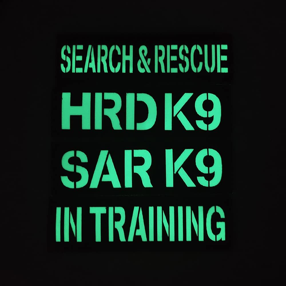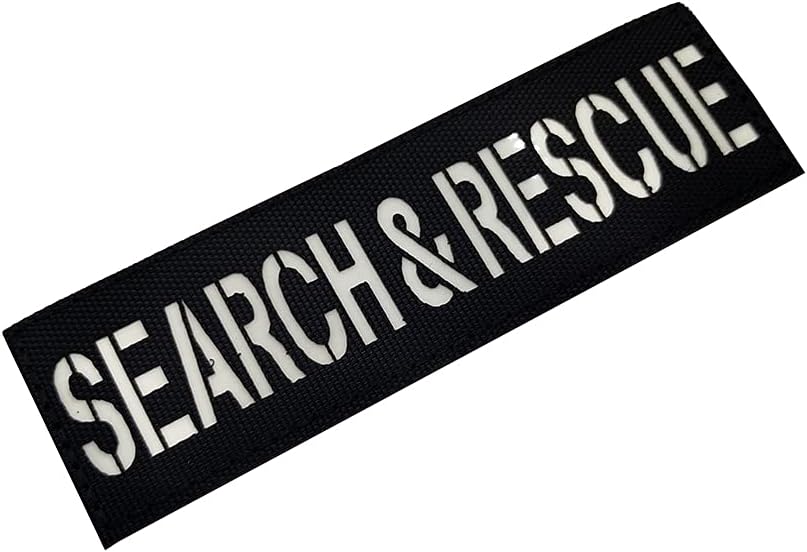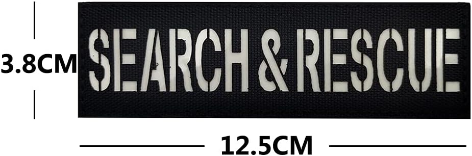 Doggie Stylz 2PC Luminous Patches Search and Rescue Removable Patches with Hook Backing for Working Dog Harnesses & Vests (Black and White)