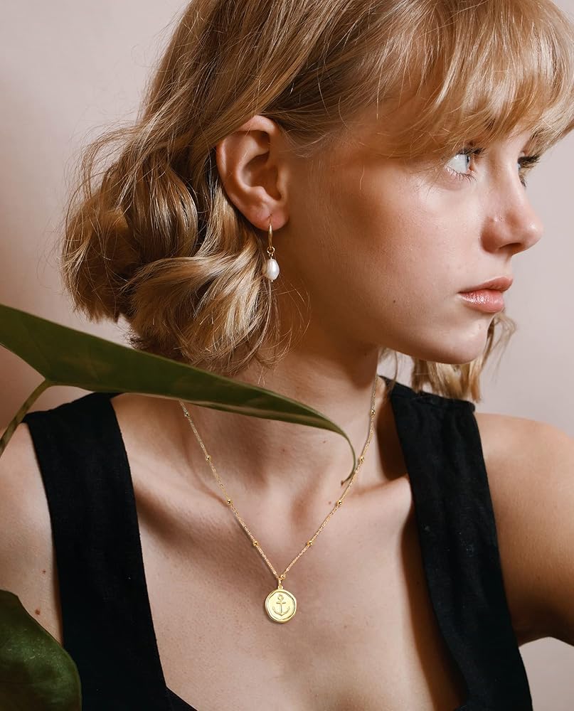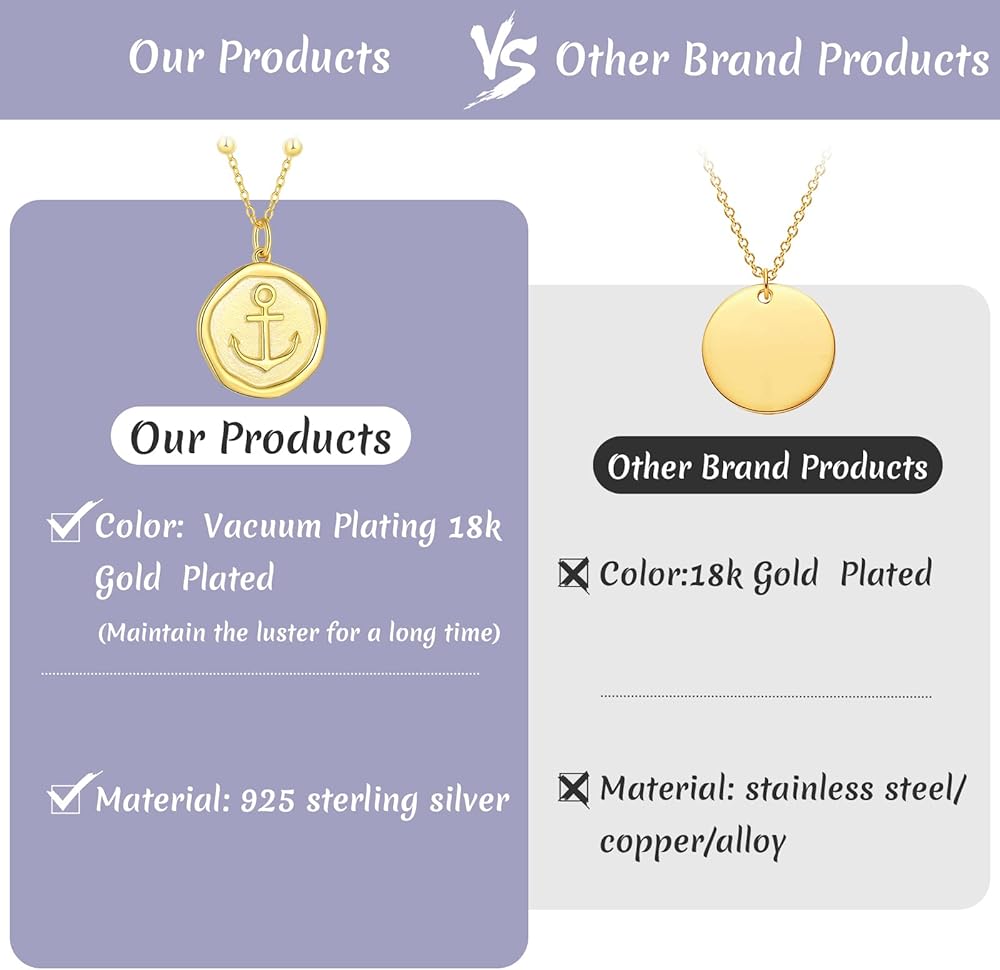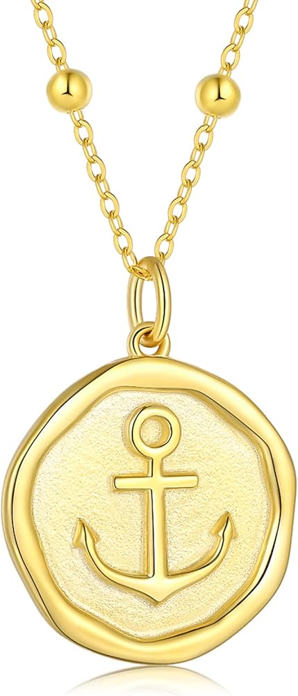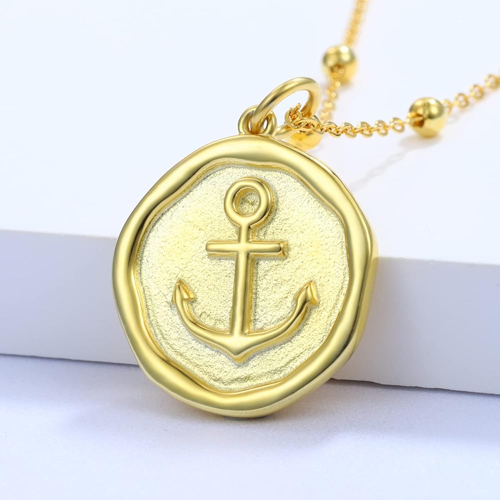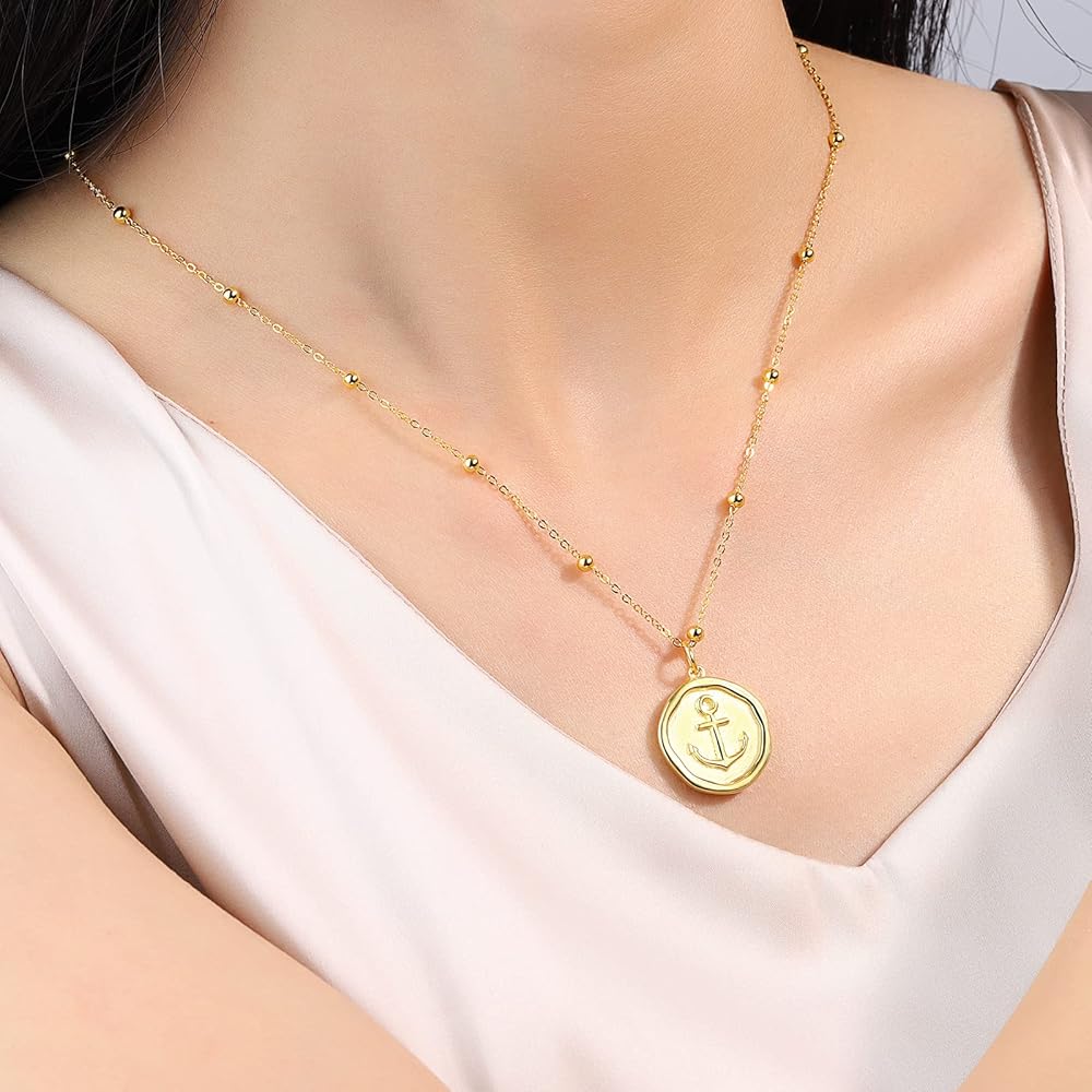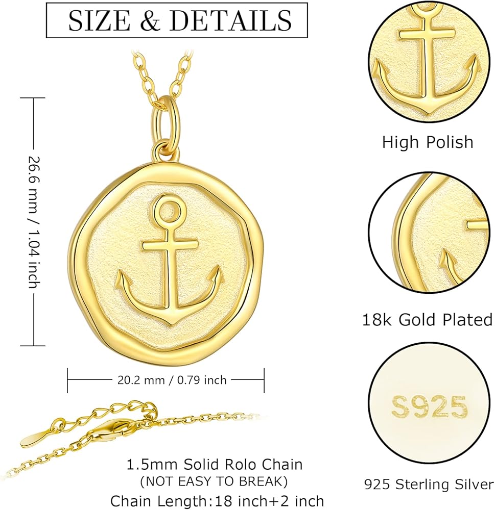 قلادة مرساة من الفضة الإسترلينية عيار 925 للنساء - قلادة من الذهب عيار 18 قيراط على شكل عملة معدنية مكتنزة قلادة مرساة بحرية مجوهرات بحرية قلادة ملهمة هدايا عيد ميلاد الأم للابنة والمراهقات