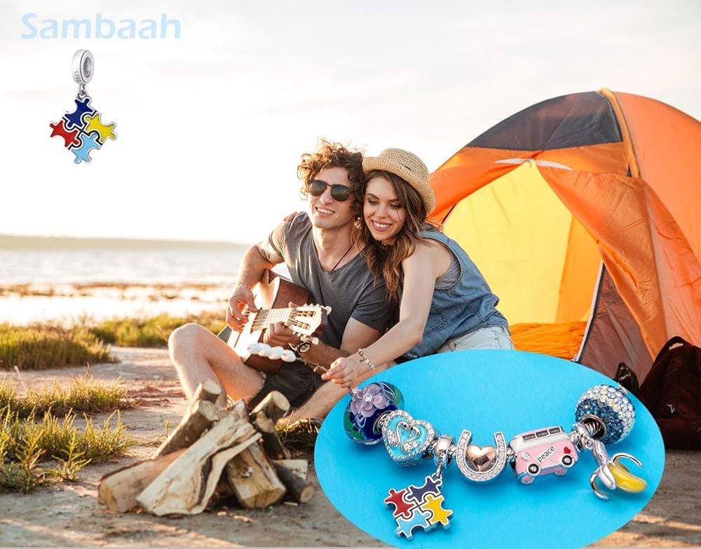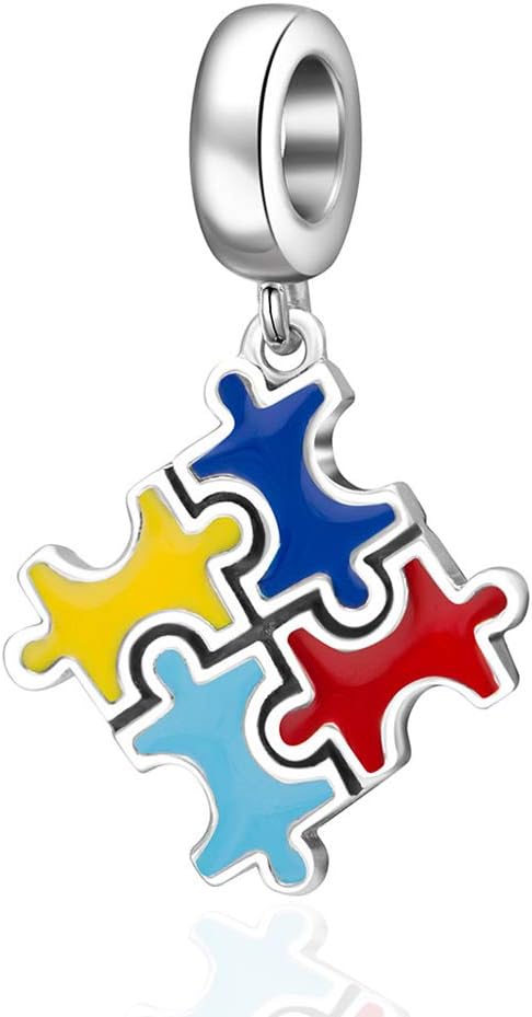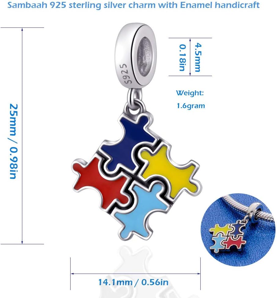• SOLID STELRING SILVER: Autism Puzzle Charm in Authentic 925 Sterling silver Material, "S925" Stamped for Authority. High Quality Enamel Colorful Charm.