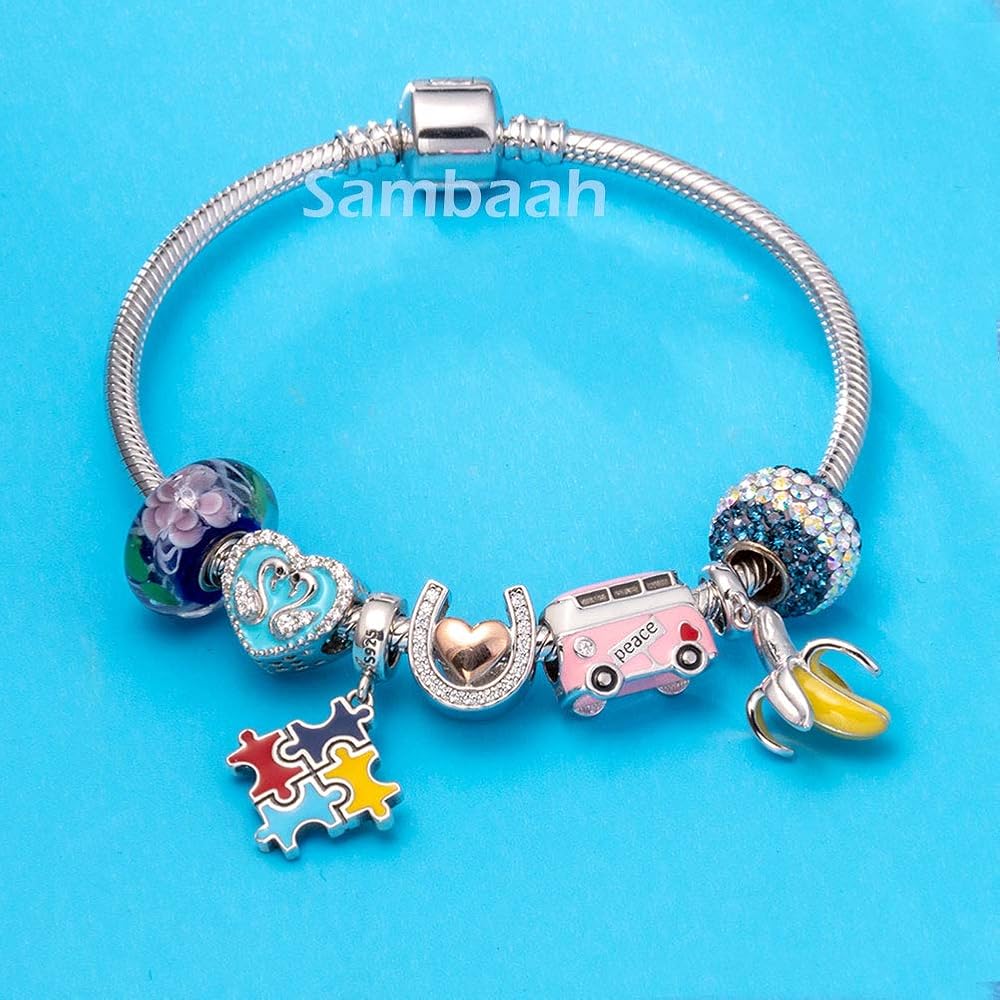 سحر الوعي بالتوحد من الفضة الإسترليني قطعة لغز ملونة قلادة خرز من المينا