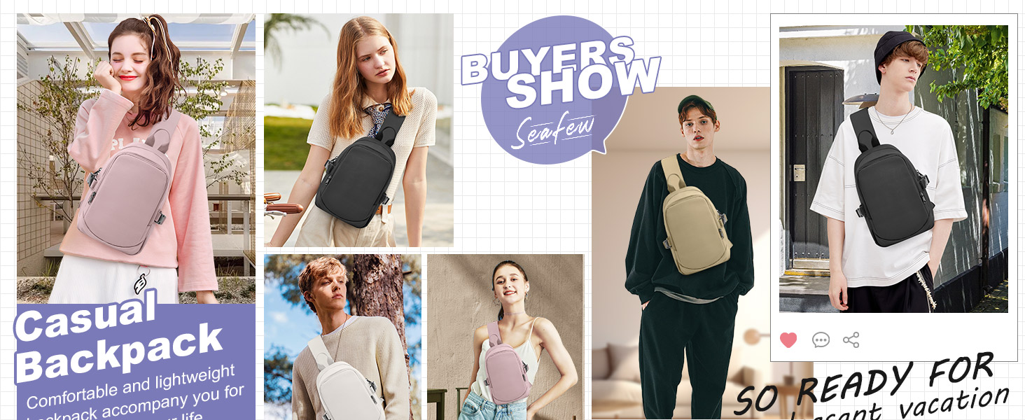 shoulder backpack, casual daypack, sling pack bag.