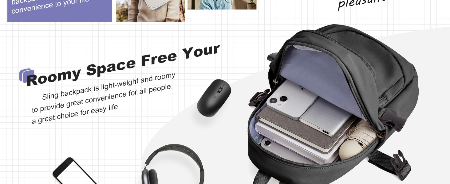 3.if you´d like to travel, hike, or climb, you can carry our lightweight sling backpack. this sling bag can hold all your belongings and stuff.