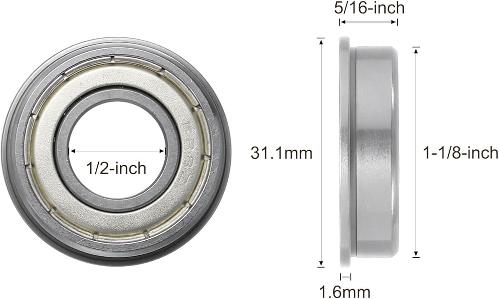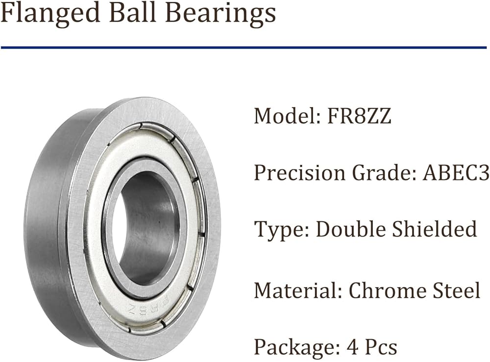 4 قطع محامل كروية ذات حواف FR8ZZ - [1/2x1-1/8x5/16 بوصة] محامل عجلات بديلة لاستخدام محور شاحنة تهذيب الحشائش، فولاذ الكروم، ABEC-3